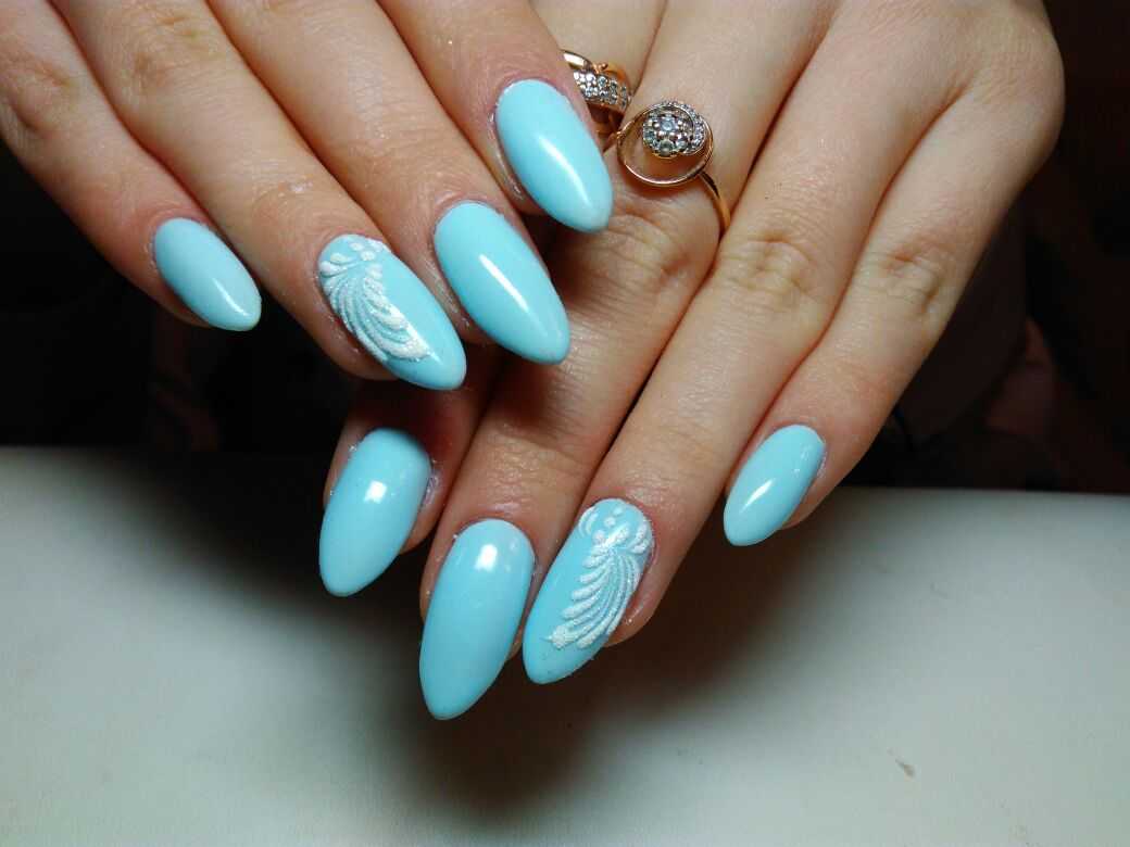 На сегодняшний день бело-бирюзовый маникюр очень популярен среди модниц. Очень актуальны как матовые, так и глянцевые текстуры этих оттенков. Новинкой стал в этом сезоне перламутровый бирюзовый цвет, аквамарин, небесная бирюза и многие другие. В качестве техник выполнения выделились градиент, акцентное нанесение, френч и лунный маникюр. Для декора дизайнеры рекомендую использовать стразы, блёстки, втирку и блестящие металлизированные полоски. Из узоров очень красиво смотрятся в таком цвете горошки, геометрические фигуры, полосы, ажурные кружева и различные тематические рисунки.