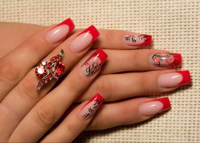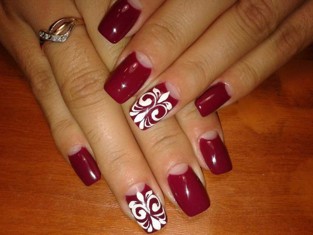 Маникюр с нарисованными вишенками будет актуален в летнее время. Елочные игрушки способны украсить новогодний маникюр. Нарисованное бордовым сердечко будет актуально на День влюбленных. А прорисованная на бордовом фоне паутинка позволит вам стать звездой тематической вечеринки, посвященной Хеллоуину.