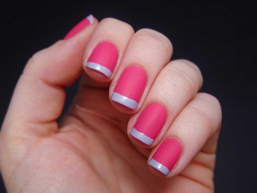 В последнее время стремительно набирает популярности матовый маникюр. В розовом цвете он выглядит особенно выразительно. Такое покрытие напоминает бархат и одинаково хорошо смотрится самостоятельно или в комбинации с глянцевым лаком, которым может быть нанесен рисунок или улыбка во французском маникюре.