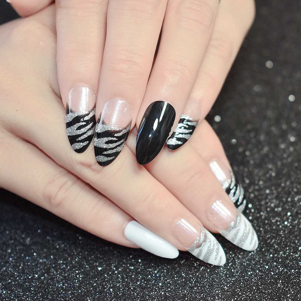 Эксцентричный вариант для эпатажных женщин. Острые, удлинённые ногти подойдут экспериментаторам, они непрактичные, чаще других ломаются. Иногда мастера не могут добиться нужного эффекта с настоящими ногтями, поэтому используют накладные или показывают свои гель лаком. Для создания острых коготков нужно двигаться двигаться только в одном направлении, это позволит немного укрепить ногти и избежать расслоения.