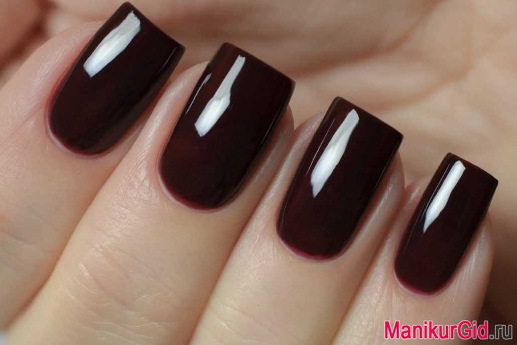 Бордовый лак может отличаться насыщенностью цвета, быть глянцевым или матовым. Матовый маникюр более эффектно будет смотреться на длинных ногтях, так как только в этом случае можно максимально раскрыть глубину цвета.