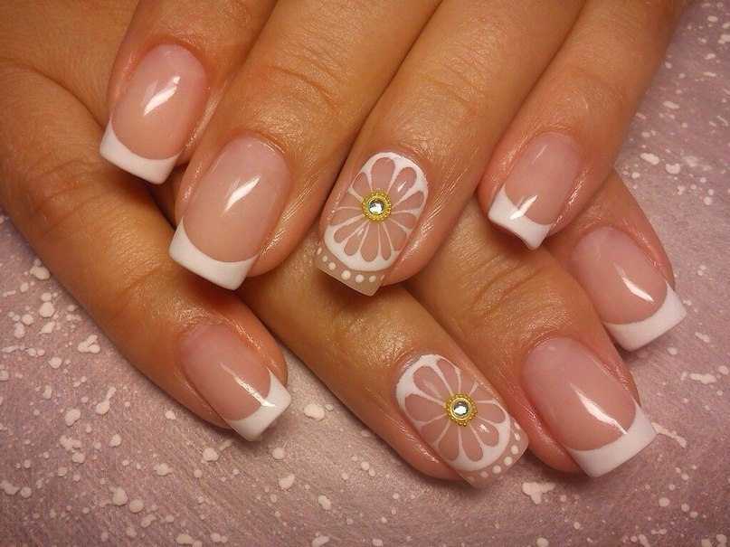Образ каждой представительницы прекрасного пола состоит из множества деталей. Модное платье, яркие аксессуары, стильная стрижка. Но немаловажную роль при создании совершенного look’a играет маникюр. Кто-то предпочитает аристократическую и сдержанную классику, а кто-то современный стиль. Но если вы все-таки не хотите терять сдержанную нотку классического французского нейл-арта, то подберите не слишком яркий рисунок для одного ноготка или выделите лунную улыбку яркими точками, что само по себе сделает маникюр выразительным.