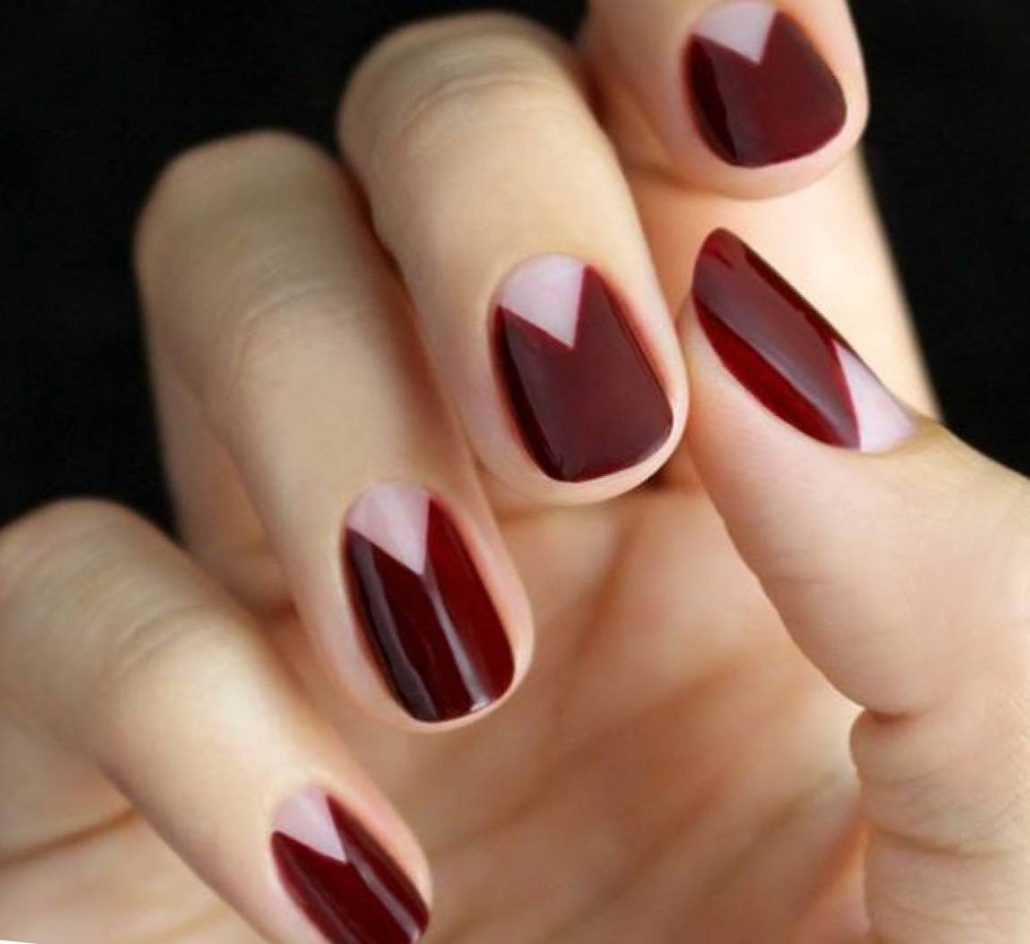 Вариантов стильного и красивого бордового маникюра огромное количество. Бордо отлично сочетается с золотом, серебром, черным, белым, бежевым, желтым, нежно-розовым, оливковым.