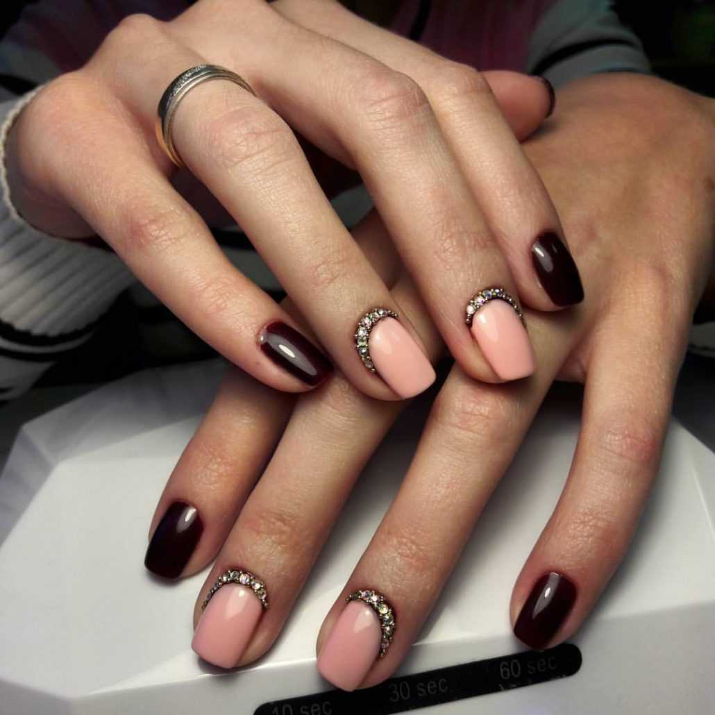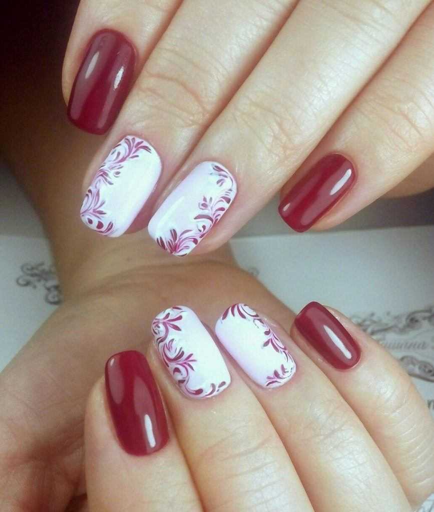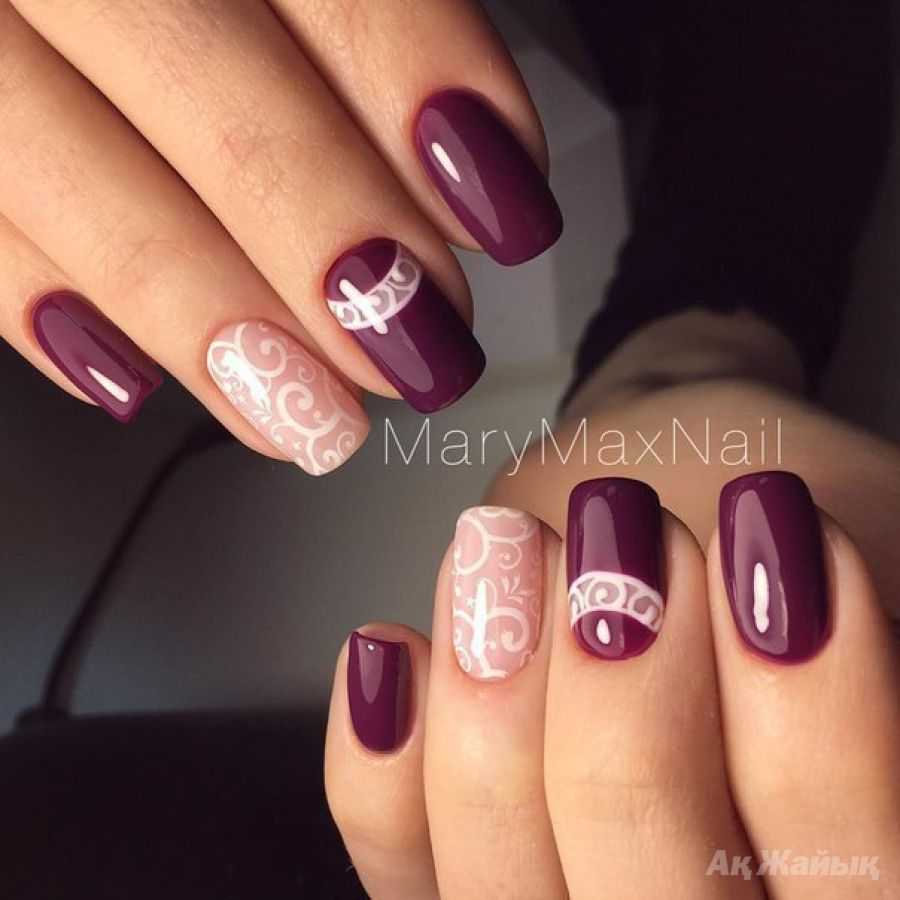 Тем, кто хочет себе более светлый маникюр, могут совместить бордовый с бежевым, розовым или любым другим из пастельной палитры.