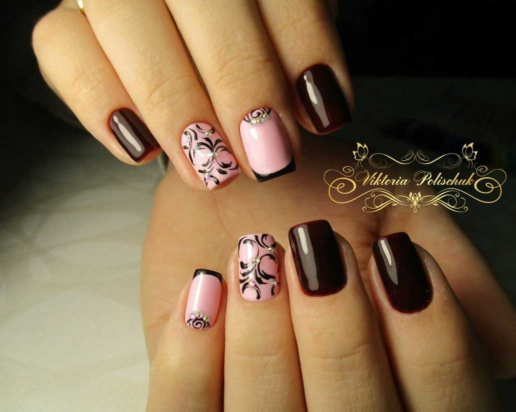 А розовый внесет в маникюр нежности и романтичности. В сочетании с бордовым он будет выглядеть еще мягче.