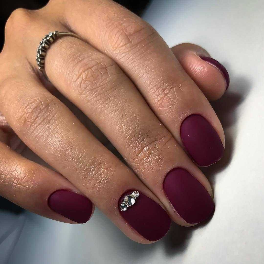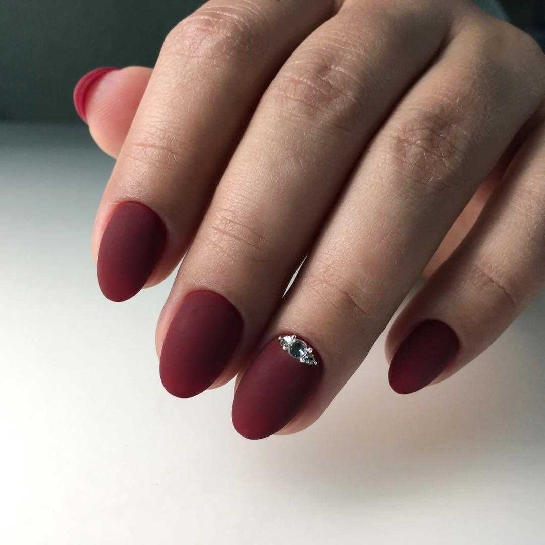 Бордовый матовый маникюр