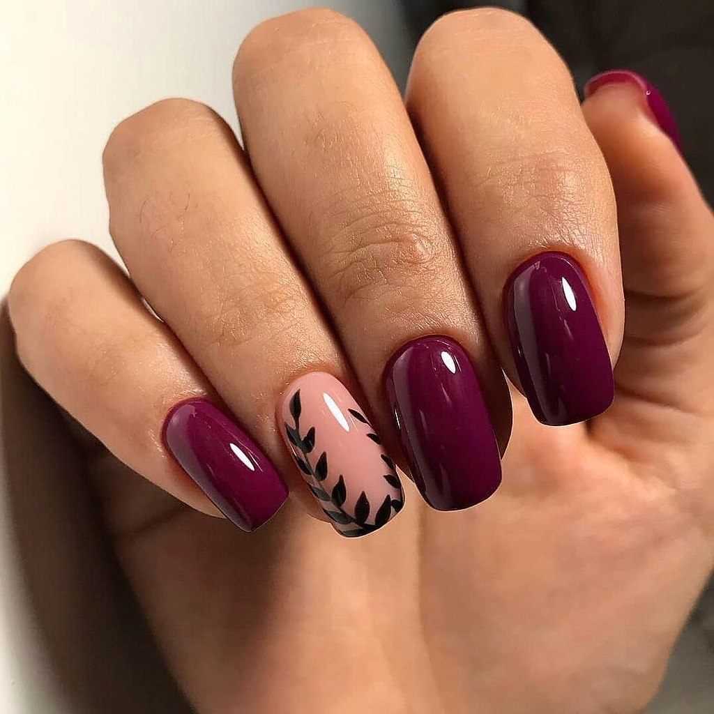 Осенний маникюр в бордовом цвете