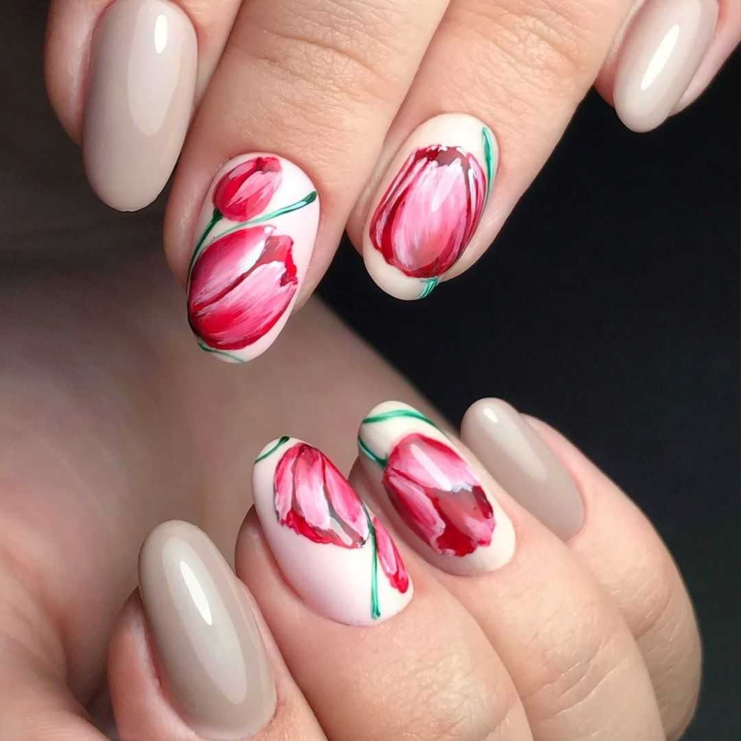 #3 Маникюр с красными тюльпанами