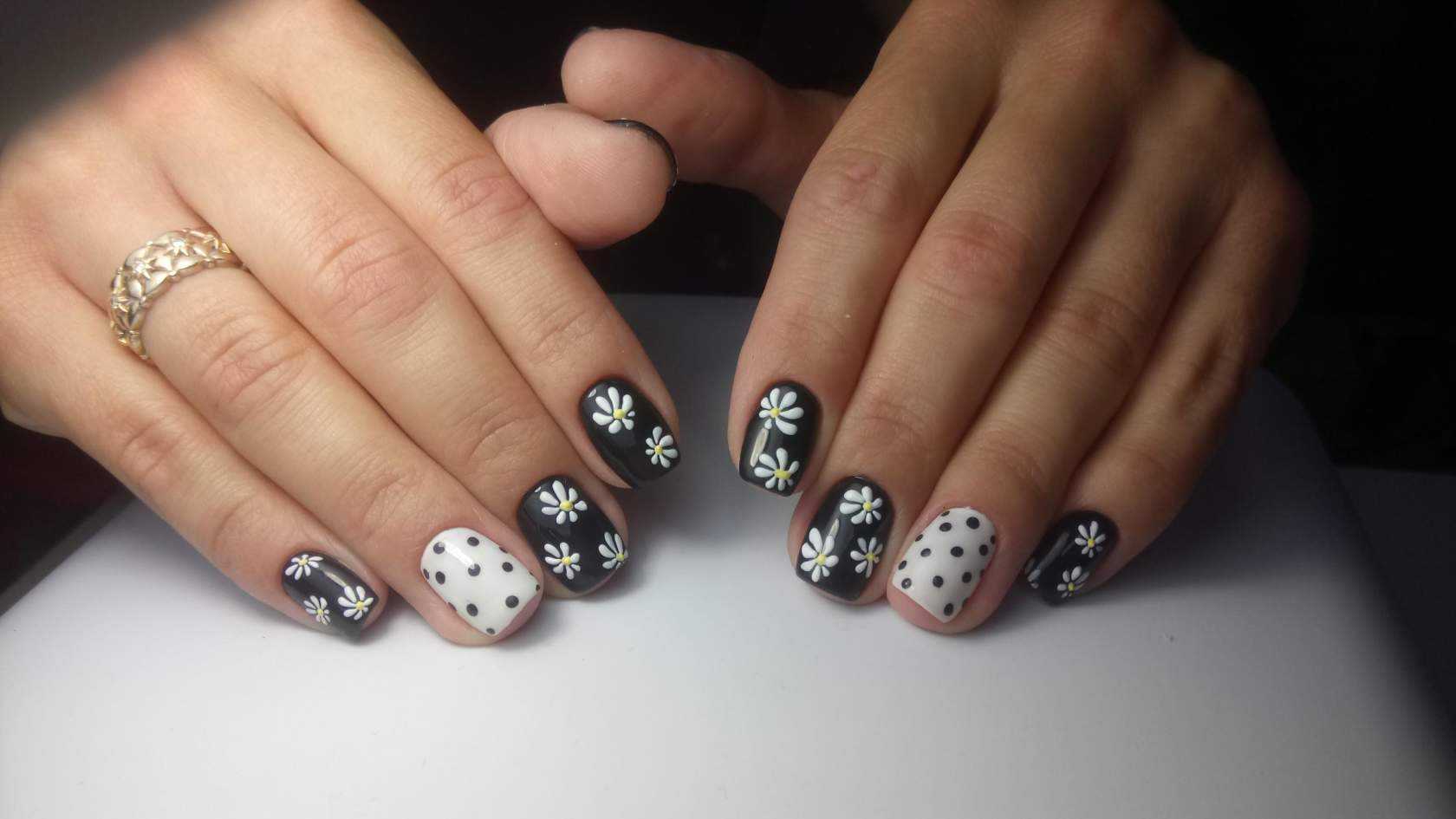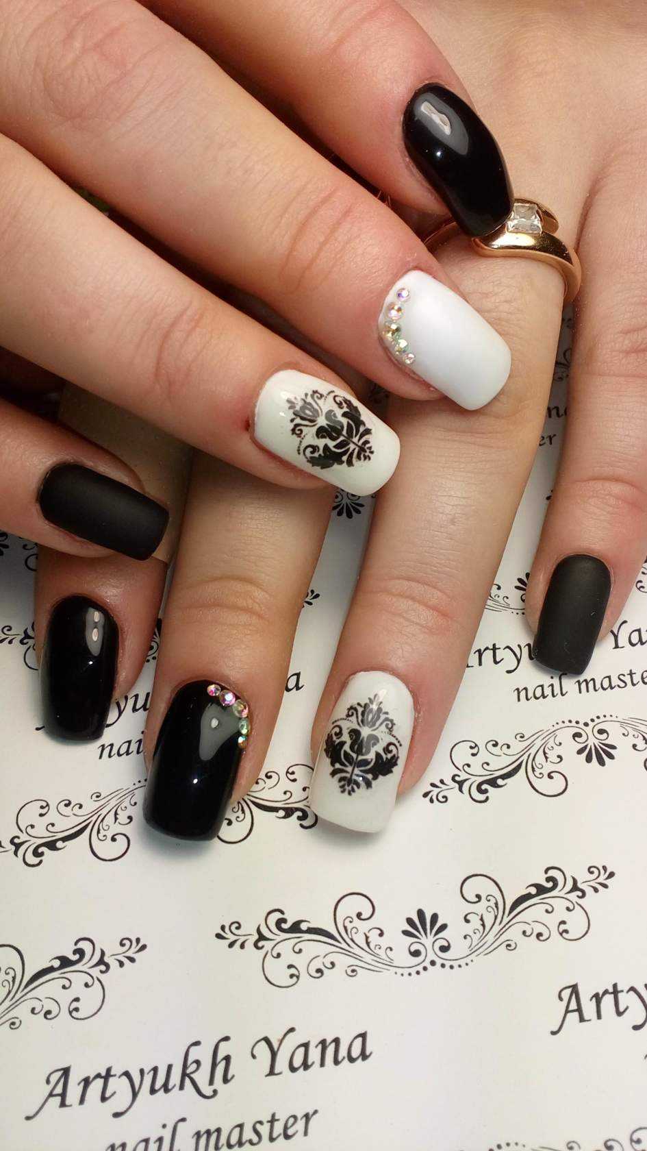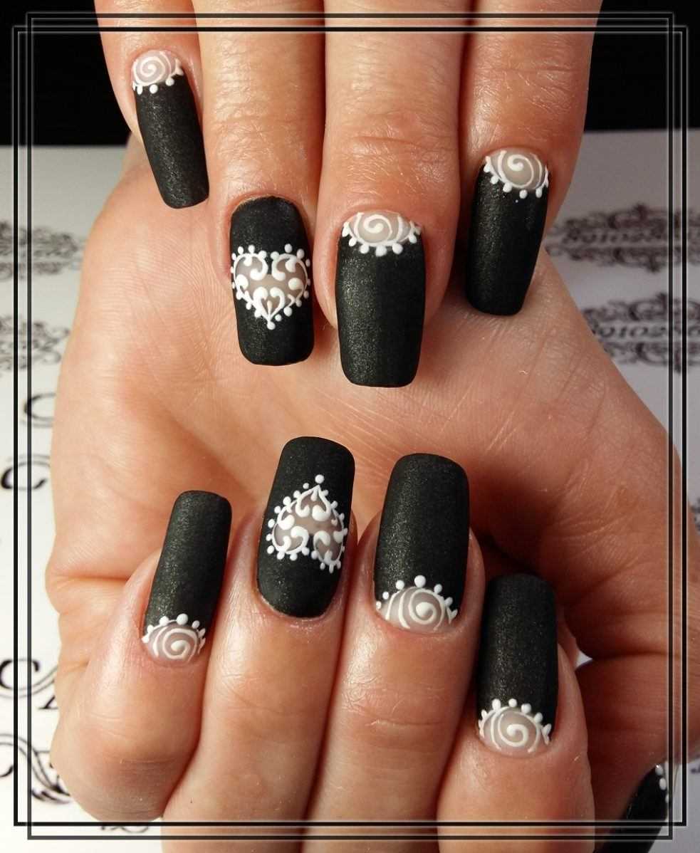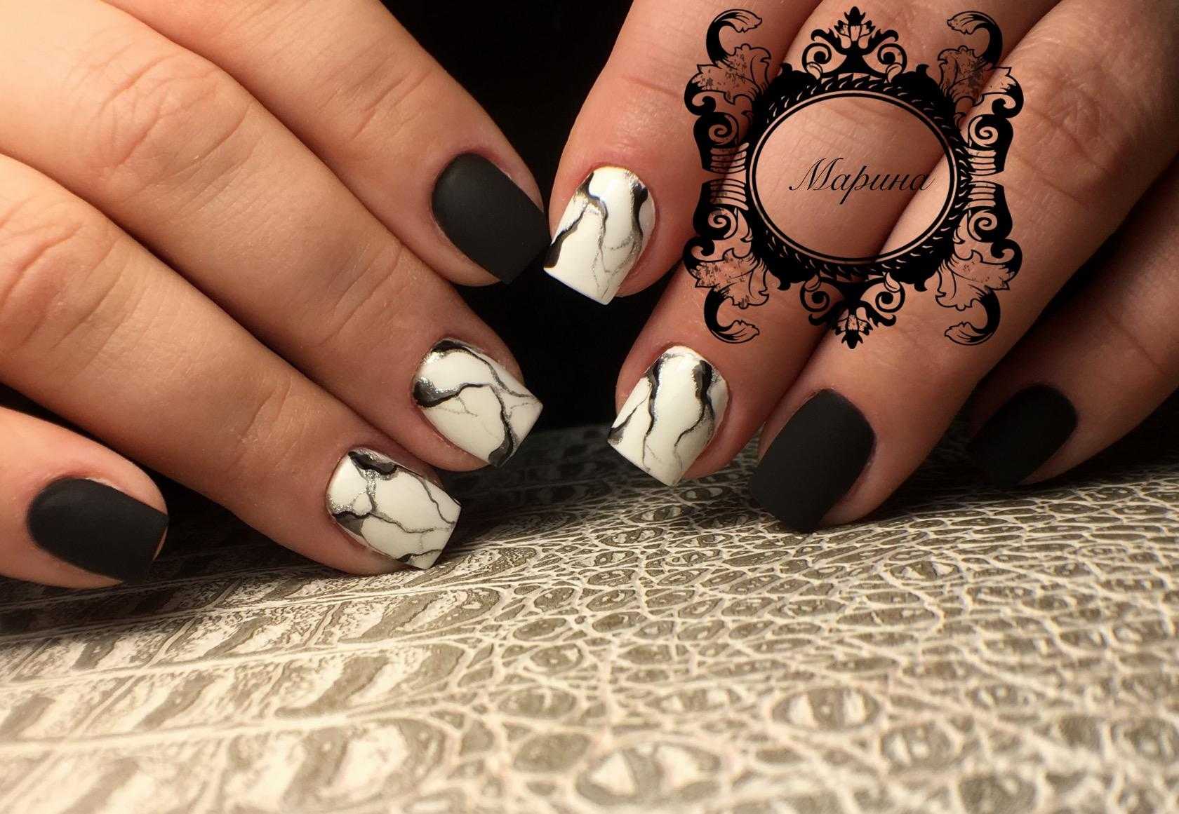 Обворожительный матовый маникюр в чёрно-белом исполнении