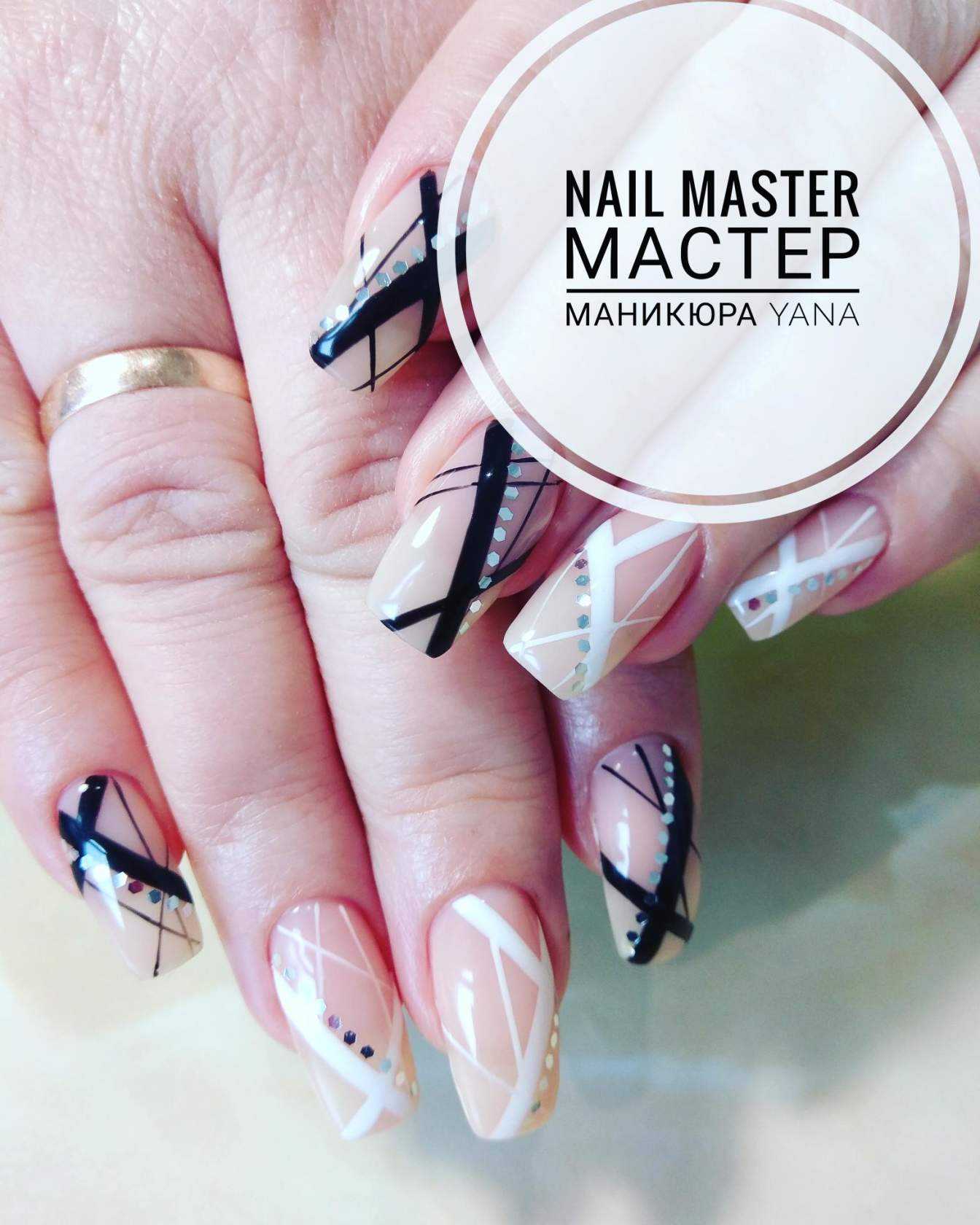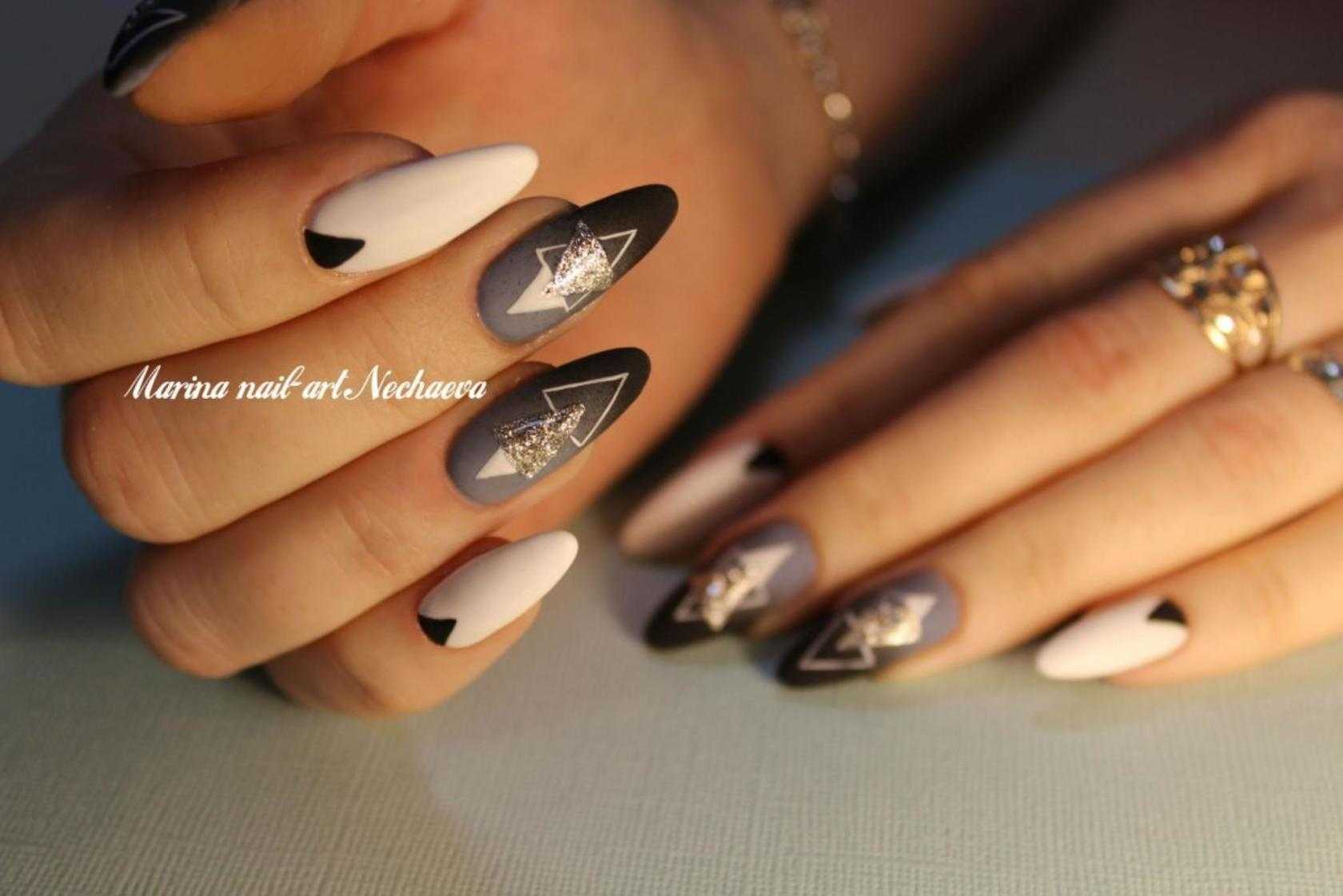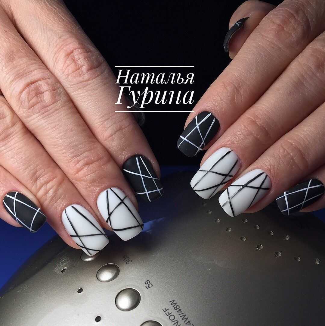 Сочетание чёрного и белого лака в геометрическом дизайне 2021