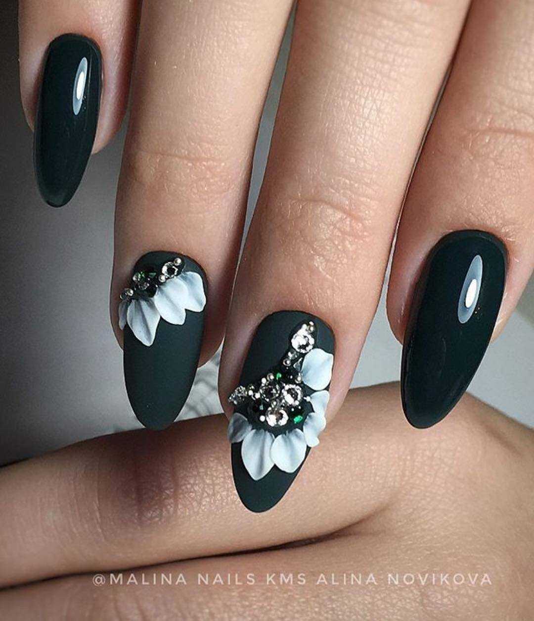 В зависимости от длины, формы ногтей, а также выбранного дизайна, черный матовый маникюр может быть элегантным, лаконичным, торжественным, готичным, эпатажным.