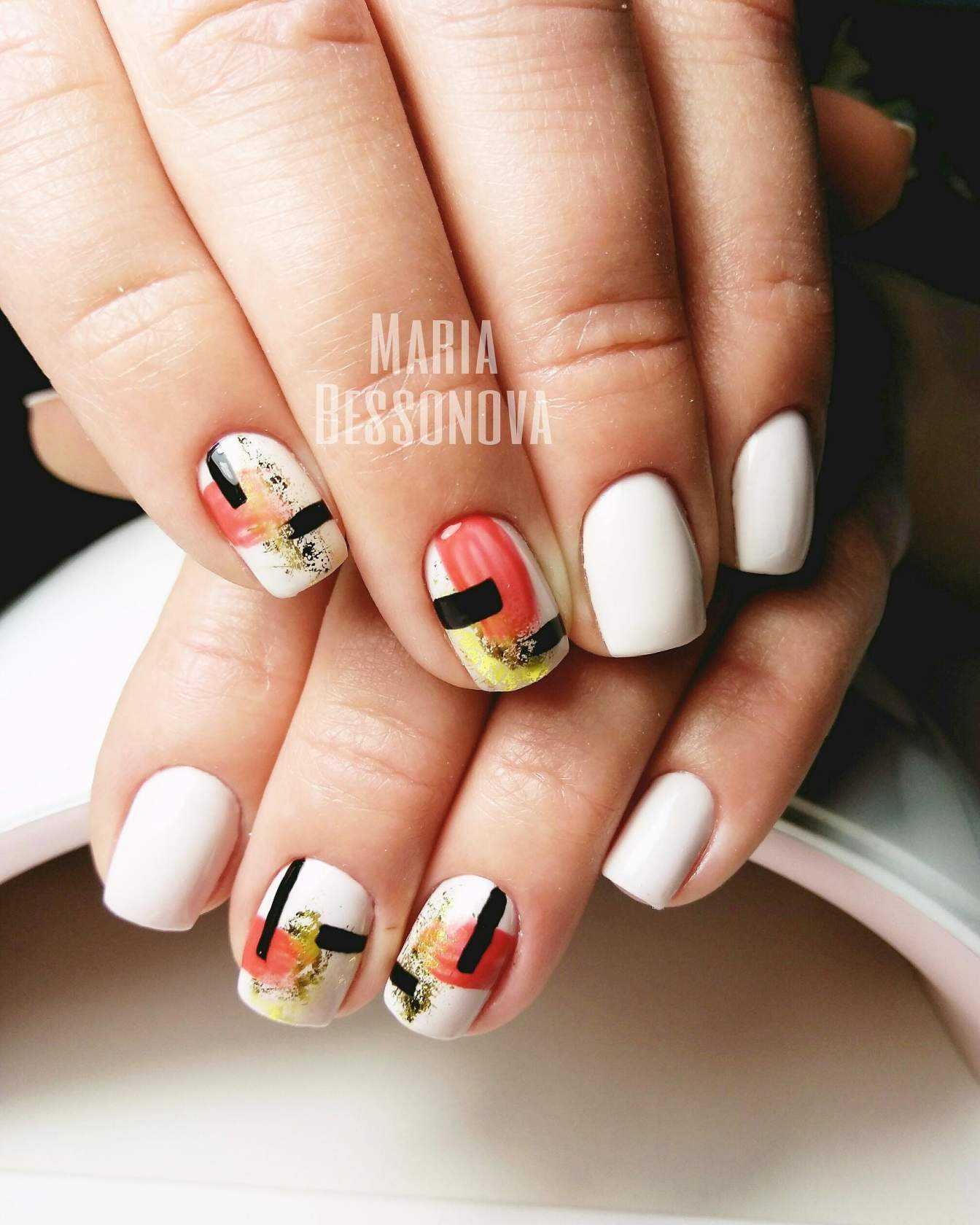 Особое внимание заслуживает белый маникюр на длинных ноготках с матовым покрытием. Стильным летним решением 2020 стало выполнение белого маникюра с неоновыми рисунками или абстрактными изображениями