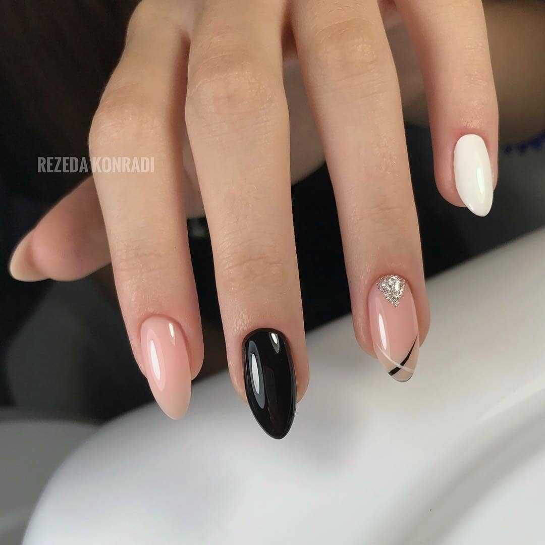 Черный и бежевый практически противоположные цвета. Но их тандем дает возможность сделать уникальный эффектный и в то же время лаконичный маникюр. Лучшие трендовые идеи, набирающие обороты популярности: