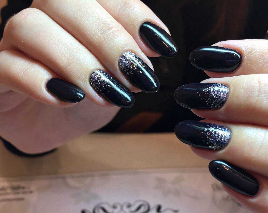 Не менее круто смотрятся черные ноготки с серебром. В выборе маникюра нужно отталкиваться от вкусов. Если, например, вам больше нравятся белые металлы – выбирайте глиттер серебряного тона, фольгу и полоску. Такой вариант оформления ногтей подходит для любительниц более сдержанных и не броских ногтей, ведь черный цвет в сочетании с серебром смотрится более холодно. Данный нейл-арт может быть абсолютно разным. Здесь главное не переборщить с нанесением серебра: ноготки можно украсить металлическим декором (серебряными бусинками по центру у начала ногтя) или полосками, узорами или сеткой. Очень роскошно и шикарно смотрится черный цвет с серебром в градиенте: когда серебристый блеск ногтей плавно меняется в черный.