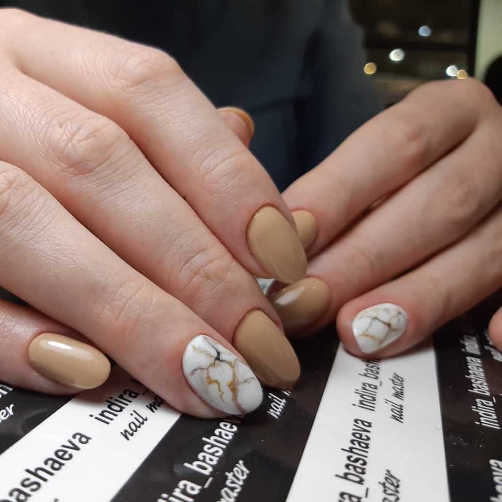 Подбирая цвет, важно учитывать весь предполагаемый лук и специфику трудовой деятельности. Кричащий маникюр для офисного работника неуместен, поэтому в маникюре можно использовать оттенки бежевого,который также входит в модные тенденции 2019 года