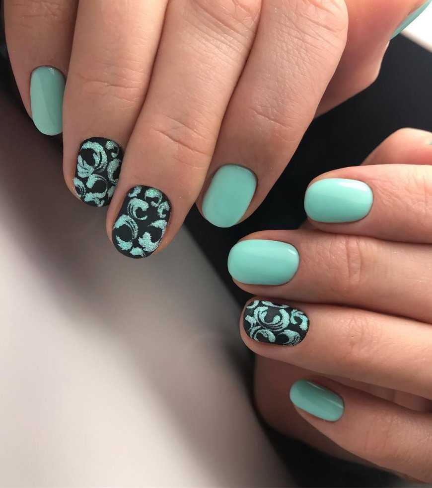 Очень эффектно на них будет выглядеть маникюр в стиле «битое стекло», нанесенный поверх шеллака. Таким образом, можно украсить все ногти или сделать несколько акцентных ноготков.