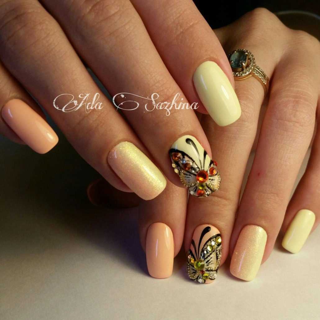 - Стильный вариант принта – бабочка, которую можно представлять на ноготках в любой яркой интерпретации.