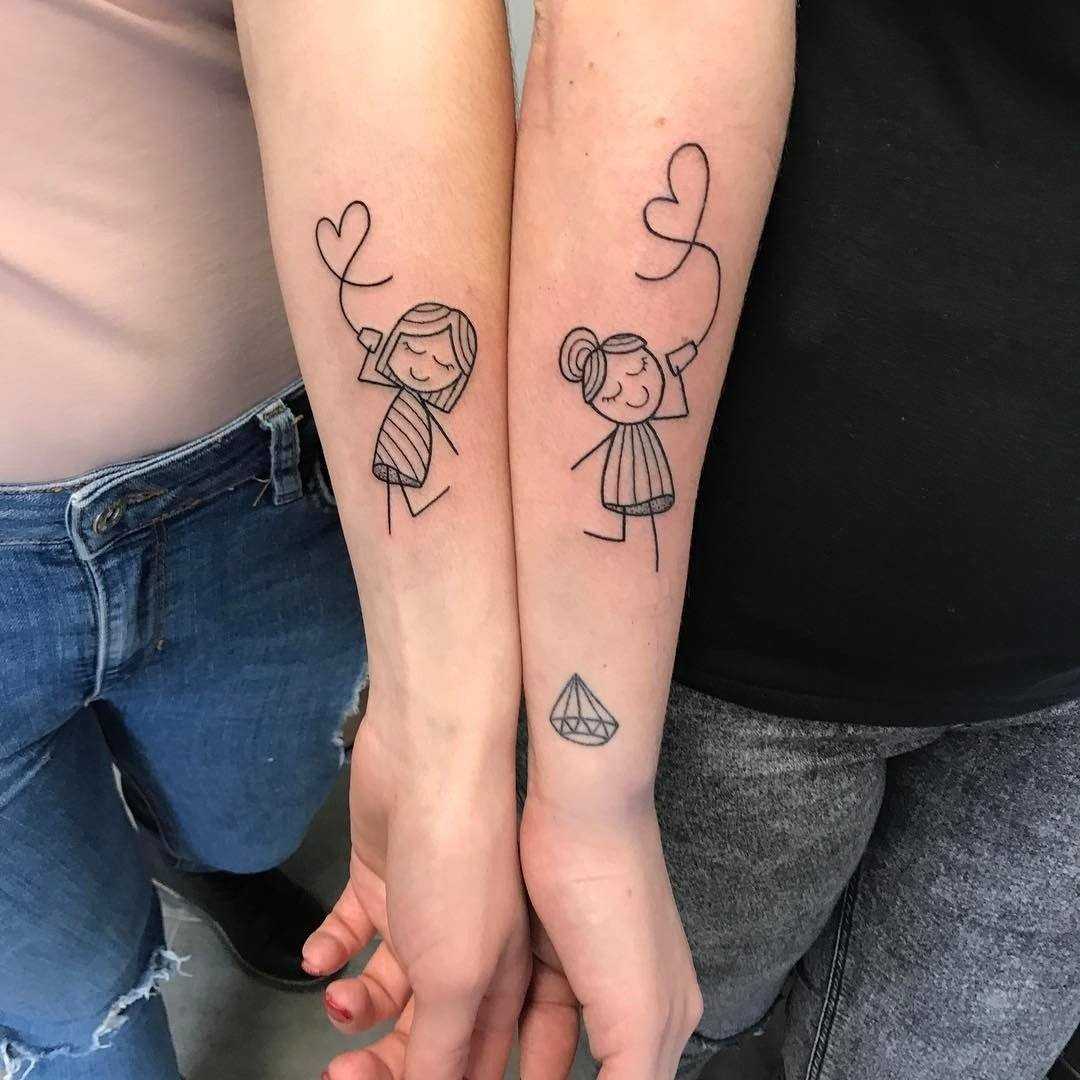 Очень часто одинаковыми татуировками украшают свои тела давние друзья детства, и рисунок в этом случае сохраняет приятные воспоминания о прошлом на протяжении всей жизни. Тем же принципом мотивируются однокурсники, решившие увековечить память о студенческом времени и избравшие одинаковую профессию. Вариаций в этом случае множество. Это могут быть эскизы любого размера и тематики, но в большинстве примеров предпочтение, всё же, отдаётся миниатюрным или средним по размеру татуировкам со смысловым значением, известным только своему обладателю и группе его товарищам.
