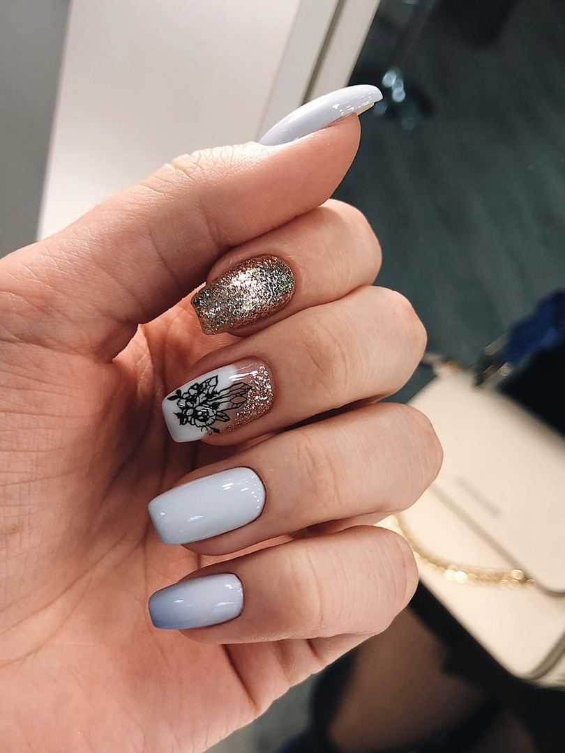 Данный вариант маникюра пользуется популярностью не только среди молоденьких девушек, но и уже состоявшихся женщин. Это связано с тем, что даже два выделенных ноготка иным цветом способны разнообразить скучный и всем привычный однотонный маникюр. Трехцветный дизайн считается популярным в 2020 году