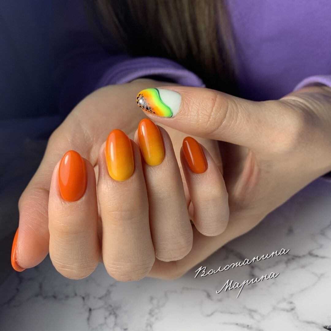 Цветовые решения летнего яркого маникюра 2020 чудесным образом переплели в себе ауру времени года, ожидание релаксации и лёгкую праздничную атмосферу, поэтому самые модные оттенки заимствованы у природы, в периоды активного роста растений и пышных цветений. Мода 2020 культивирует смелое сочетание нежных и сочных оттенков, представленных в самых необычных вариациях. Для модного разноцветного маникюра актуальны оригинальные чередования оттенков, футуристичные и реалистичные изображения цветов, травинок, веточек, фруктово-ягодные сюжеты, блестящие переливы втирки, смелые переходы градиента и многие другие идеи.