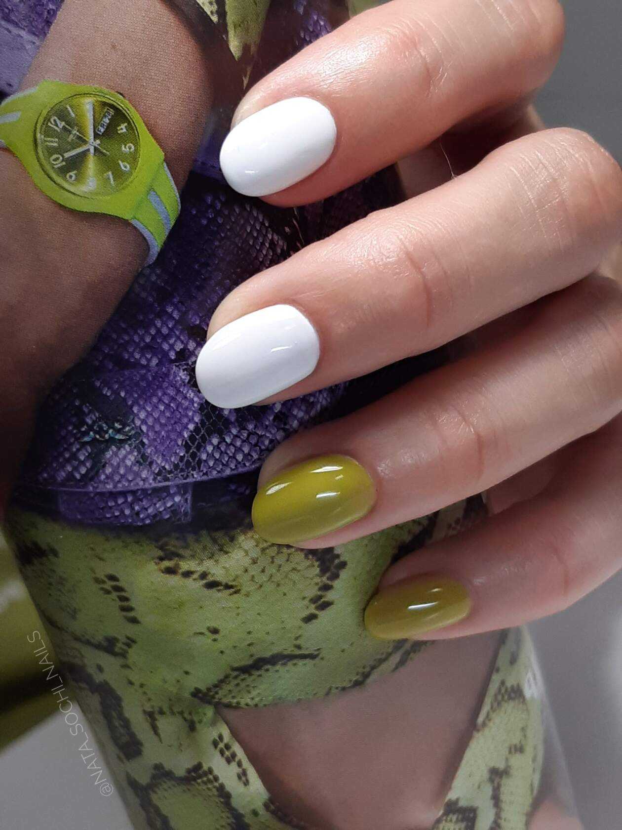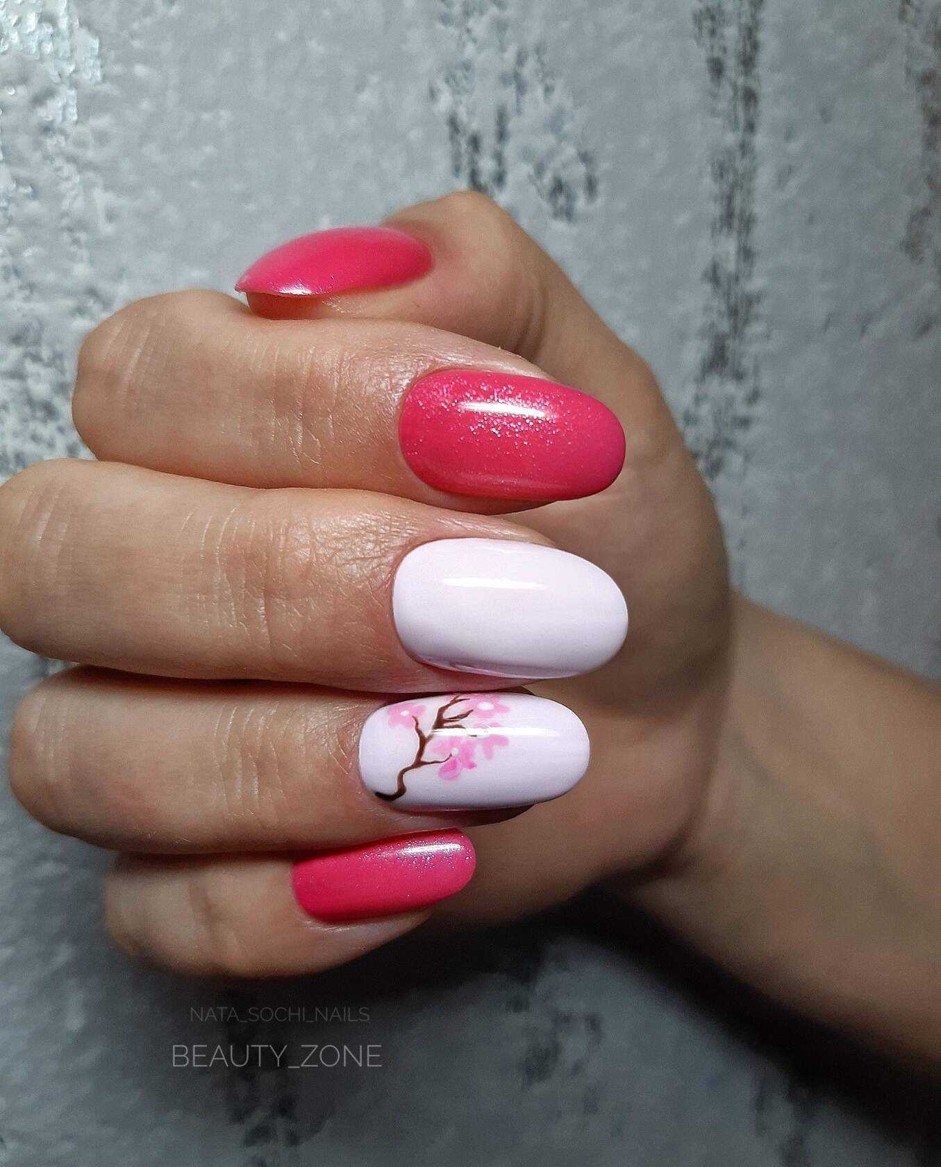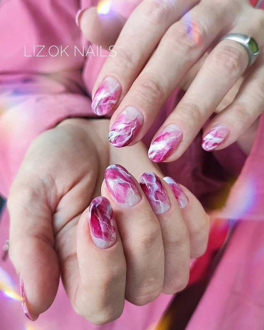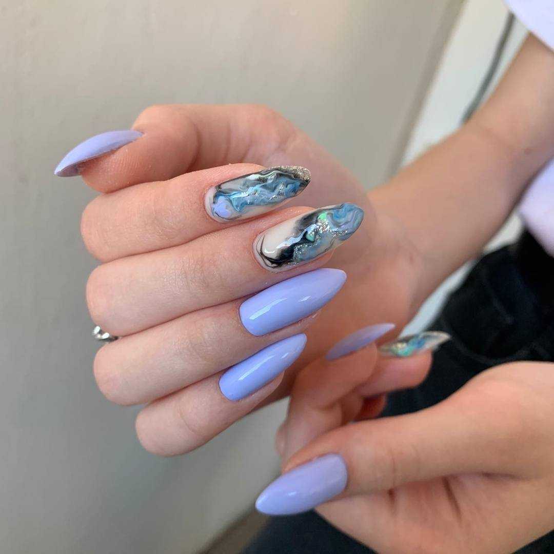Оригинальная идея – оформить на правой и левой руке разные варианты дизайна, позволяет барышням не только проявить свою инициативу и пофантазировать в этом направлении, но и одновременно с привычными техниками попробовать что-то новое. Летние тенденции 2020 и огромный выбор гель-лаков в этой ситуации являются незаменимыми помощниками. Вы можете оформить на правой руке однотонный маникюр, а на левой украсить ноготки рисунками, выполненными в близких по тональности оттенках. Не менее эффектно в таком варианте смотрится нанесение на контрастные покрытия разных по тематике изображений, например, на правой руке ноготки украсят элементы флористики, а на левой – геометрические фигуры или абстрактные рисунки.