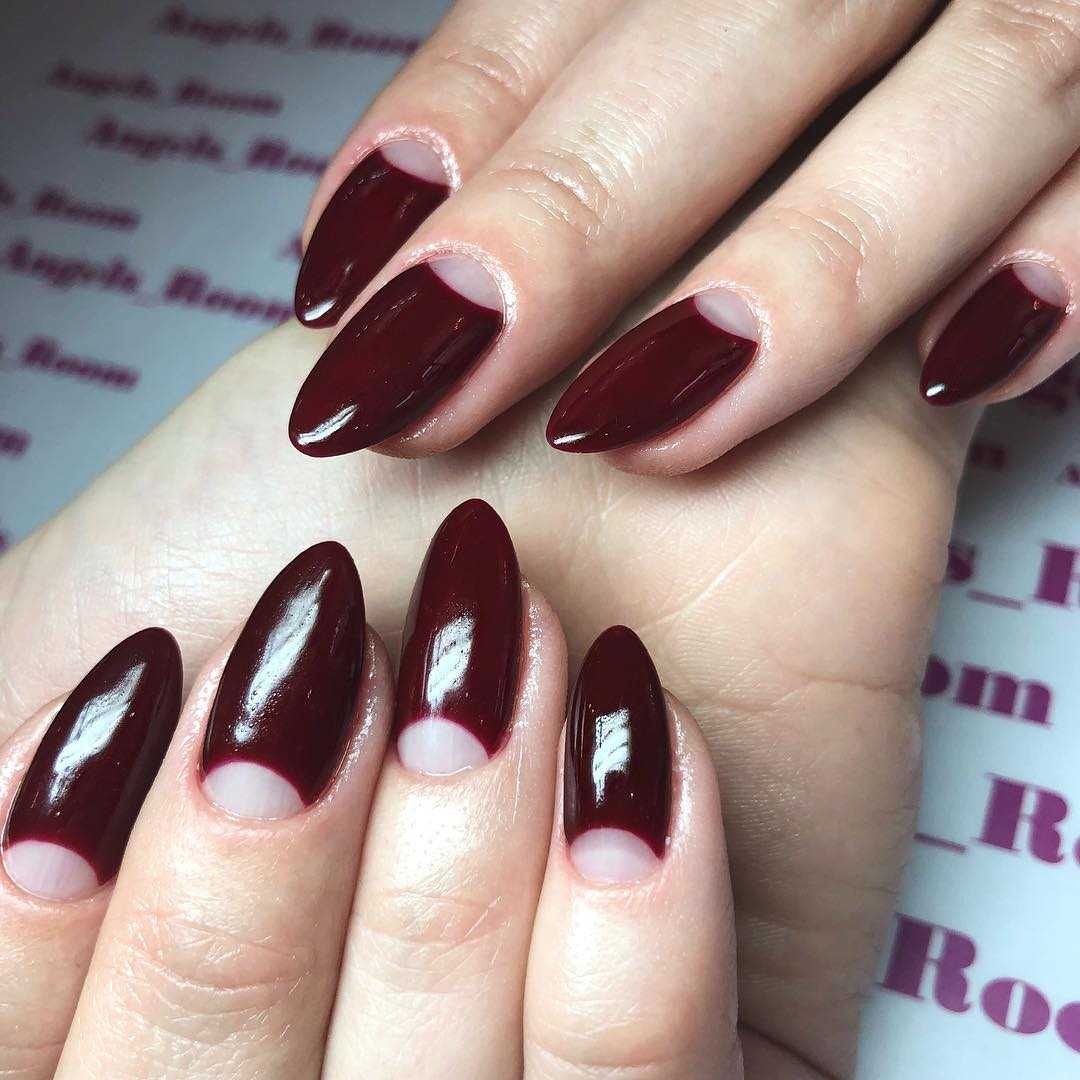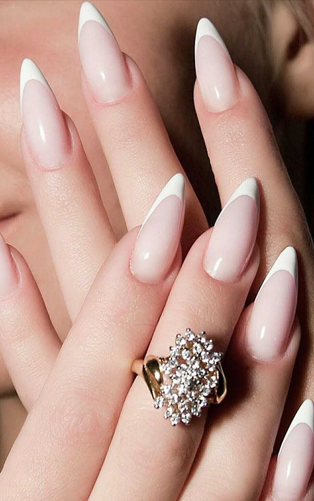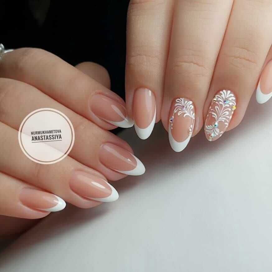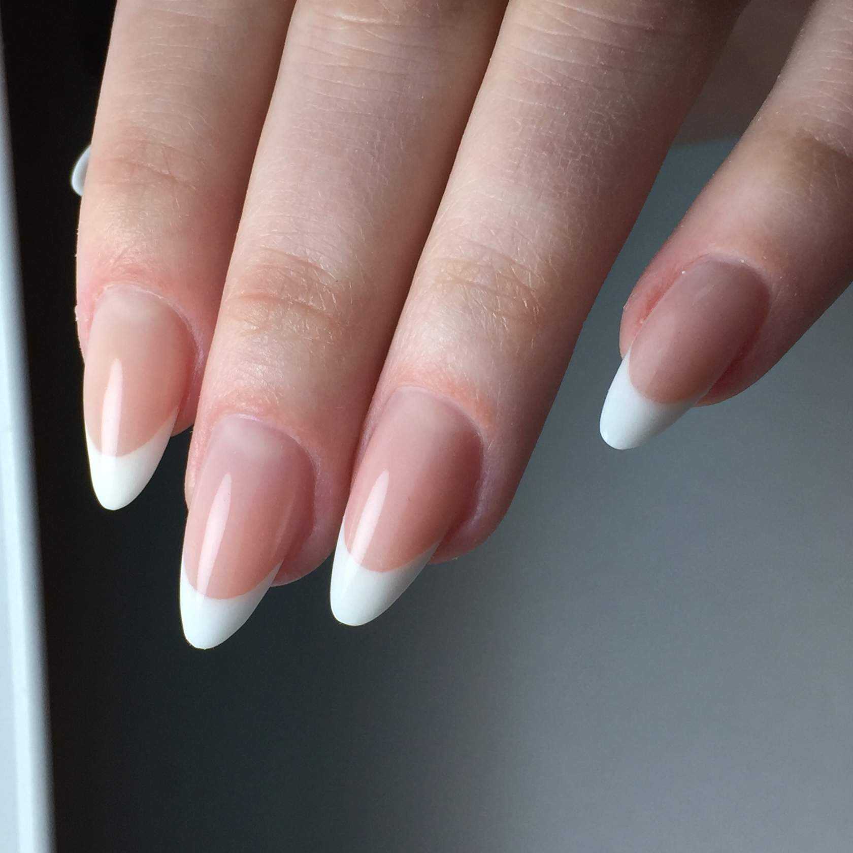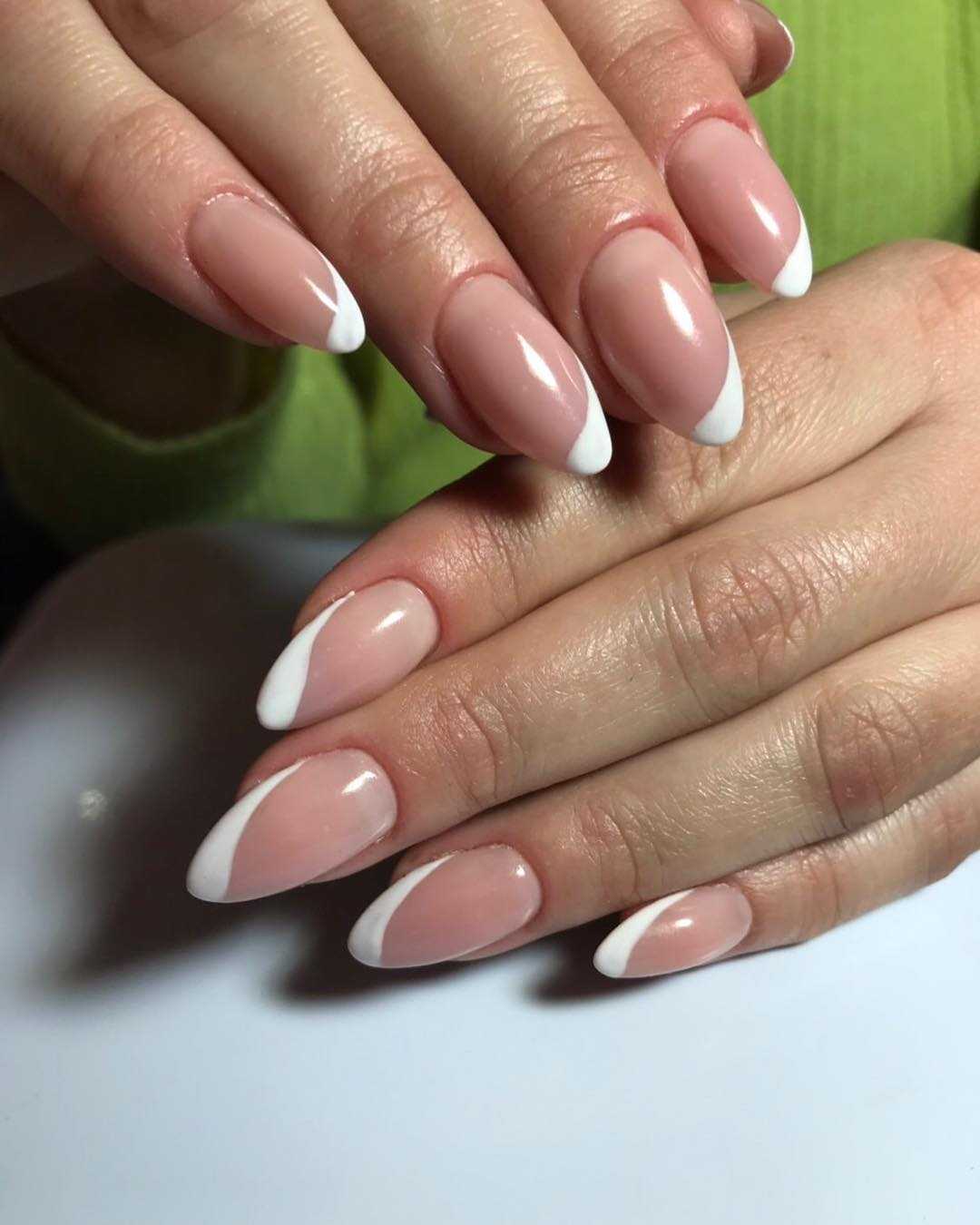 Френч на миндалевидных ногтях в 2021 году — отличный вариант, следование традициям.