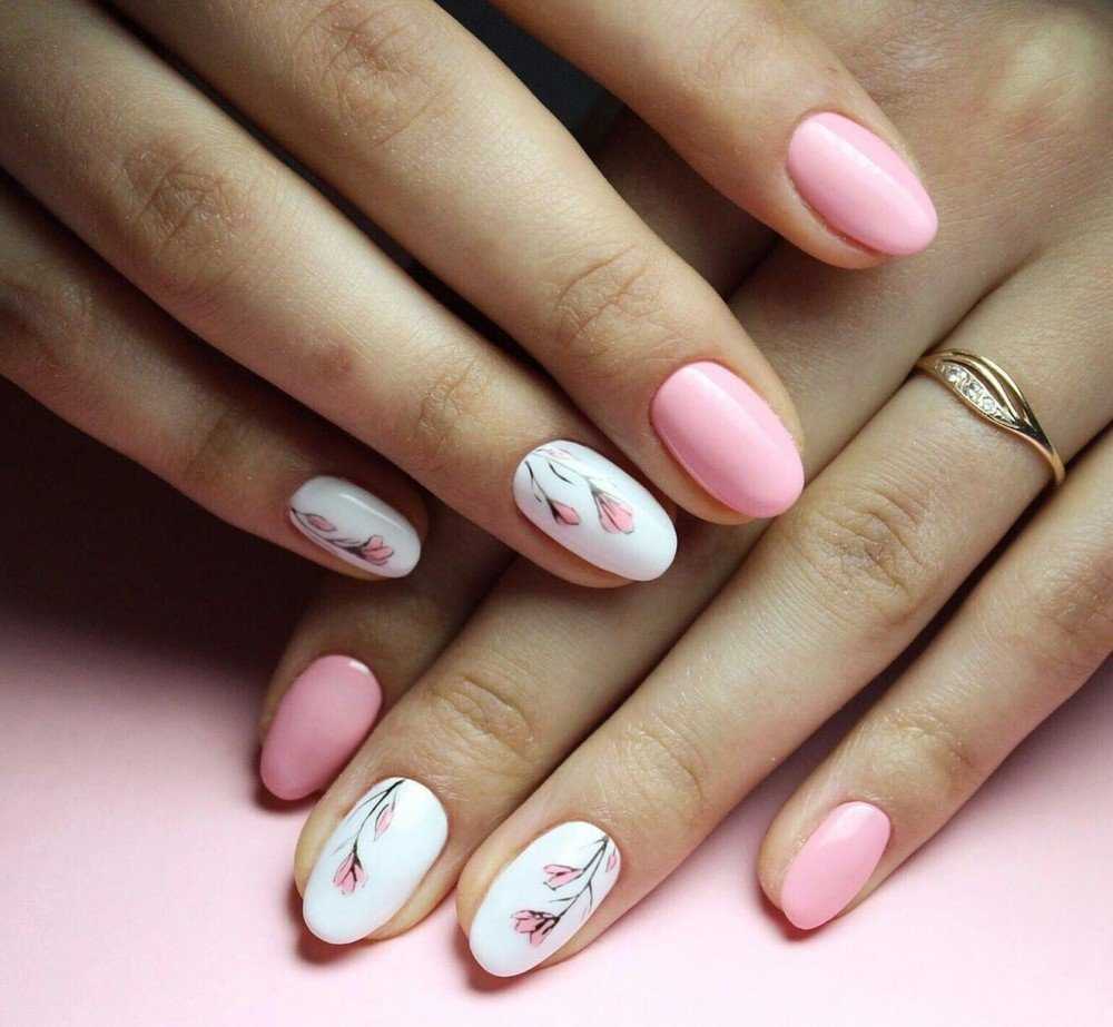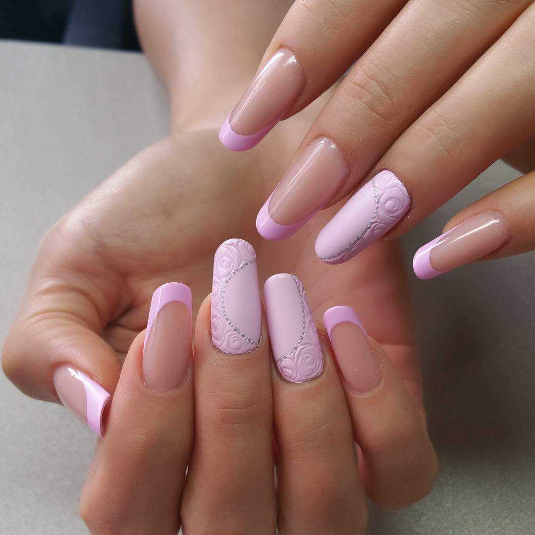 Сочетание розового и голубого оттенка стали уже традиционным тандемом! Именно эти пастельные тона помогут тебе создать интересный и не скучный маникюр, который будет очень выгодно смотреться на удлиненных ногтях формы «миндаля». Что касается выбора цвета, то отдавайте предпочтение мягкой гамме и пастельным тонам, яркость будет здесь неуместна.