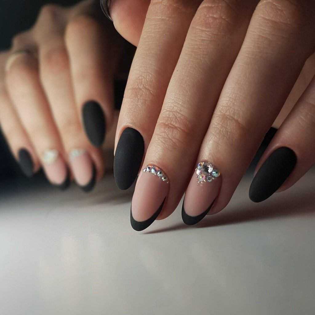 Особенно оригинально будет смотреться однотонный матовый маникюр с добавлением блестков или камней. Отметим, что этот вариант отлично подойдет к праздничному нейл-арту.