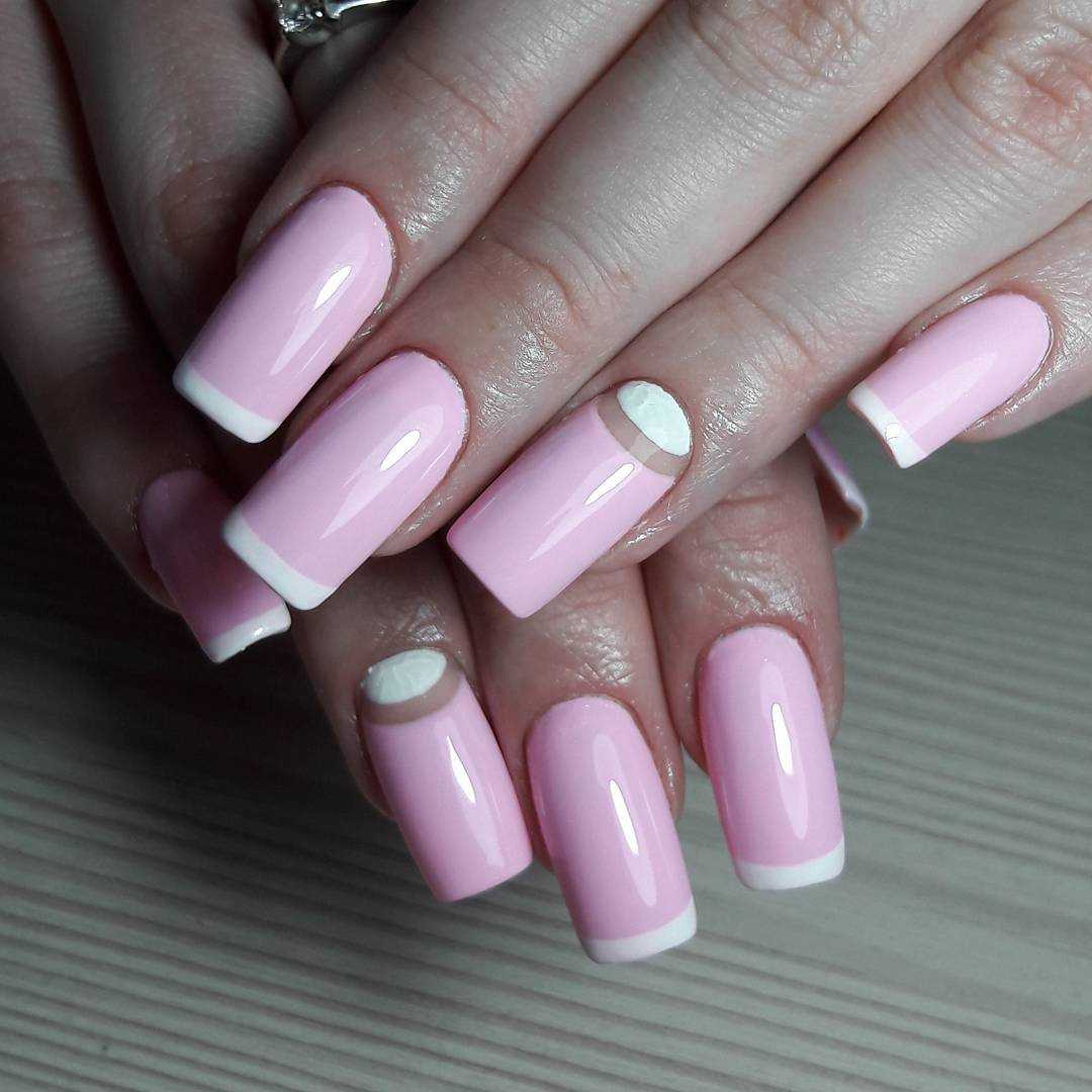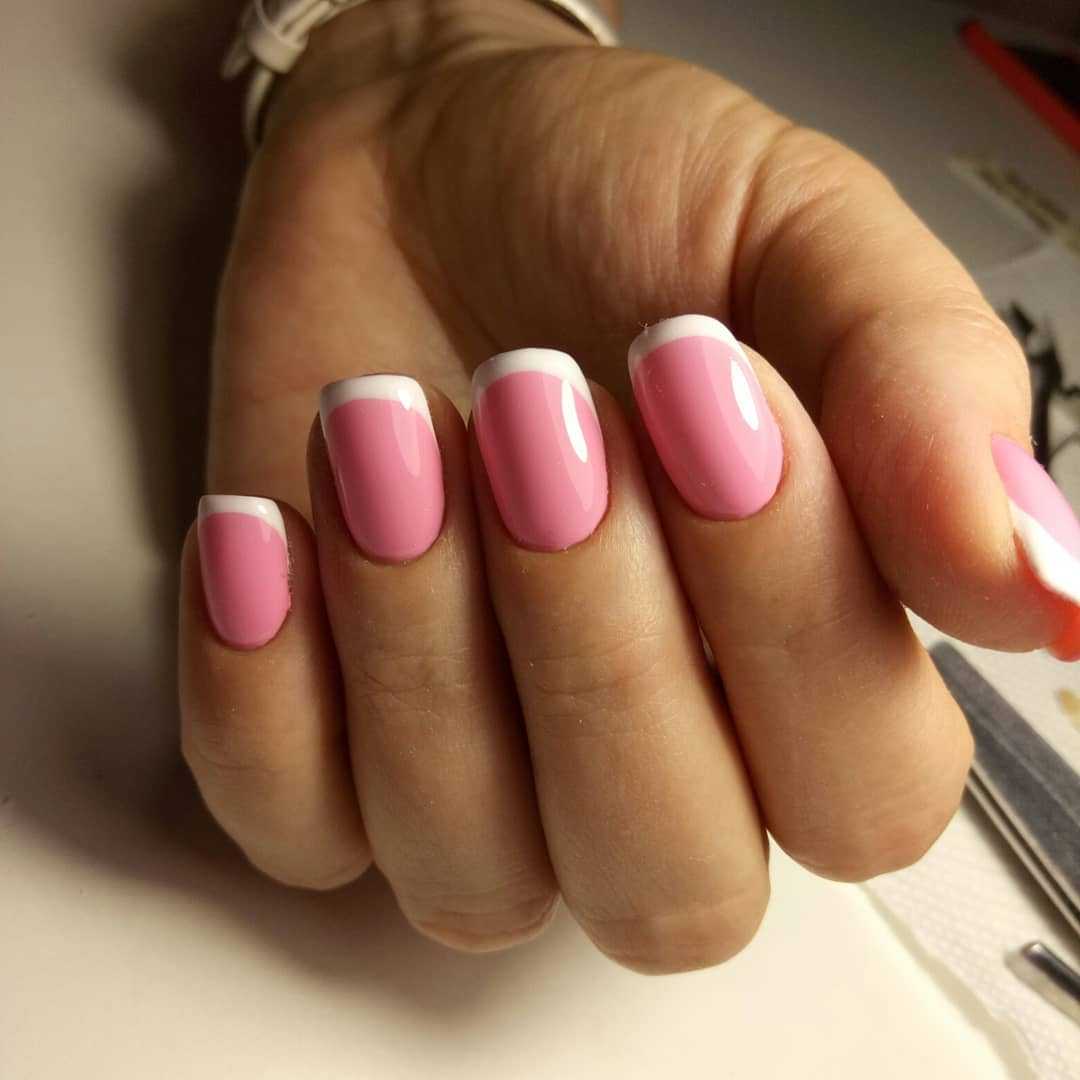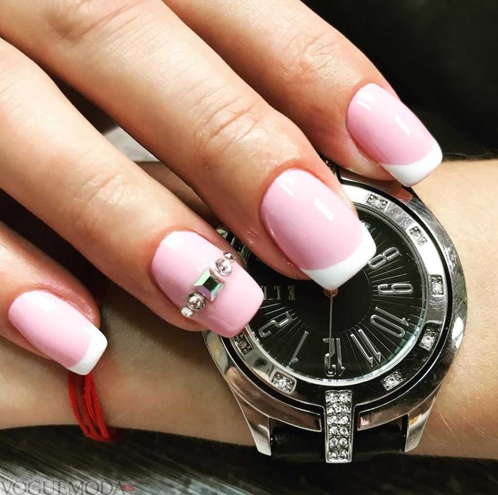 При появлении гель-лака у девушек появилась возможность наслаждаться ухоженным маникюром и аккуратным дизайном ноготков на протяжении 2-3 недель. Розовый френч – это отличный вариант для долгосрочного маникюра, ведь можно подобрать нейтральный оттенок, который не будет выглядеть слишком броско, или же наоборот более яркий тон, чтоб выглядеть привлекательно и стильно. Данный маникюр будет великолепно сочетаться как с офисными комплектами, так и с шикарными вечерними нарядами. Не обязательно выполнять стандартную линию улыбки. Можете смело экспериментировать. Очень утонченно выглядит треугольная улыбка с тоненькими розовыми линиями сверху. По желанию нейл-арт можно украсить декором.
