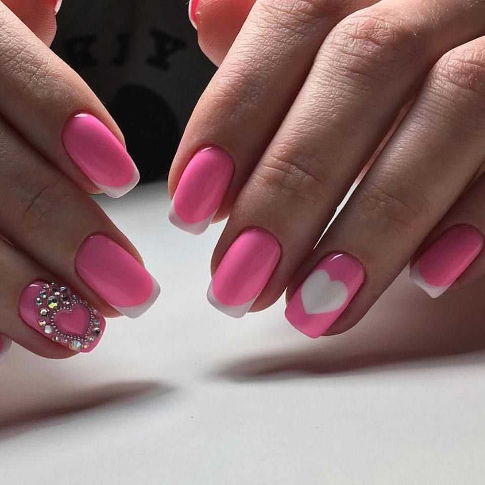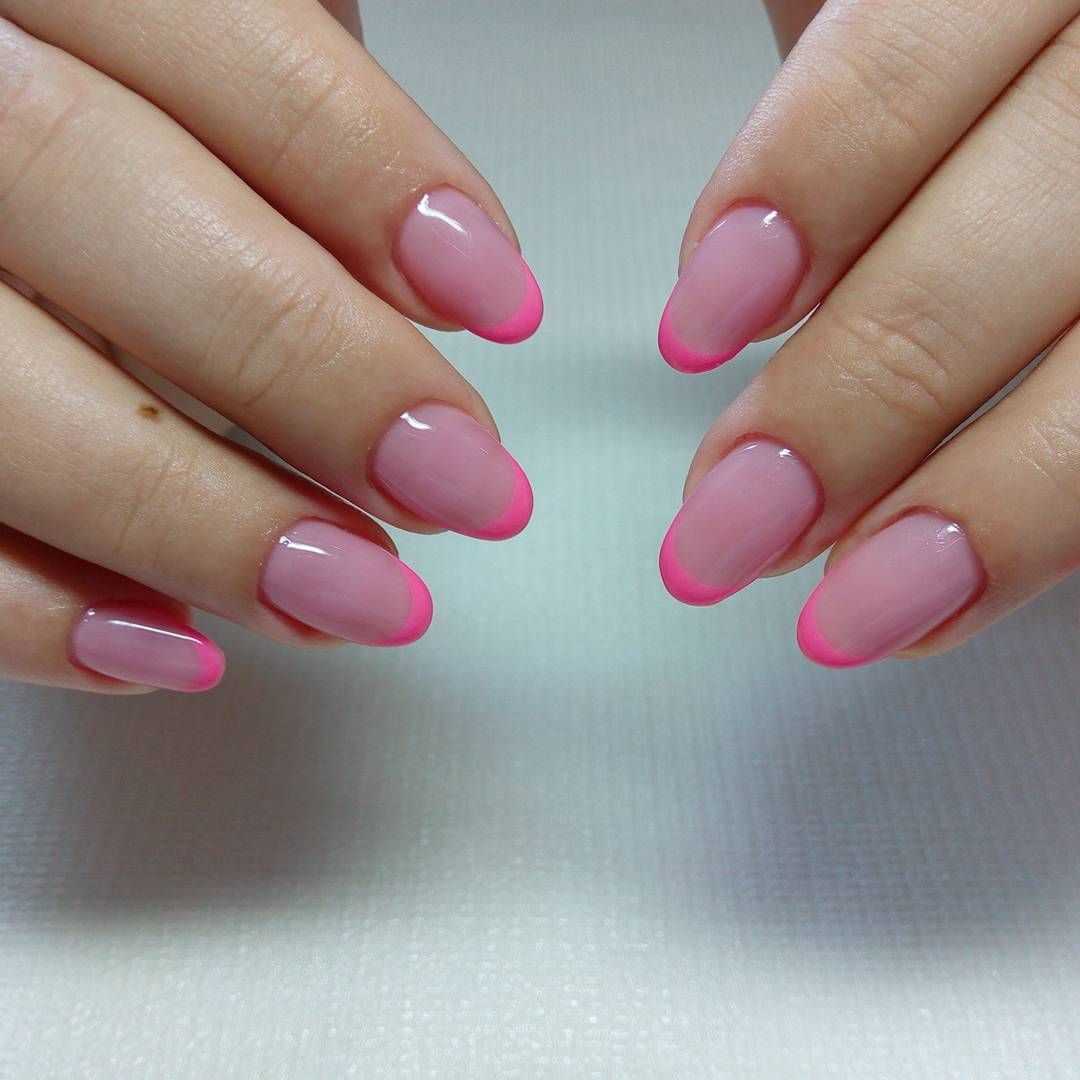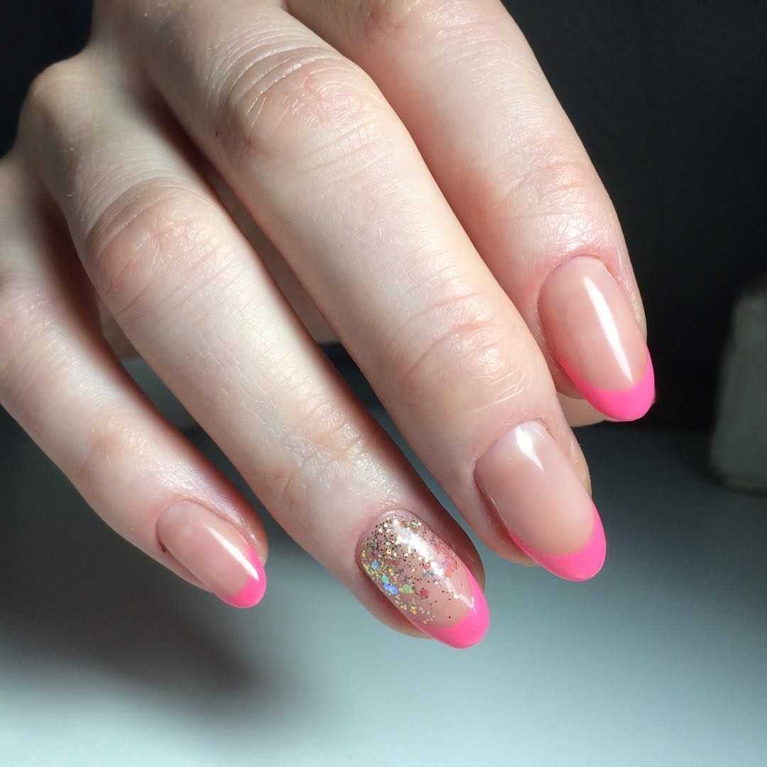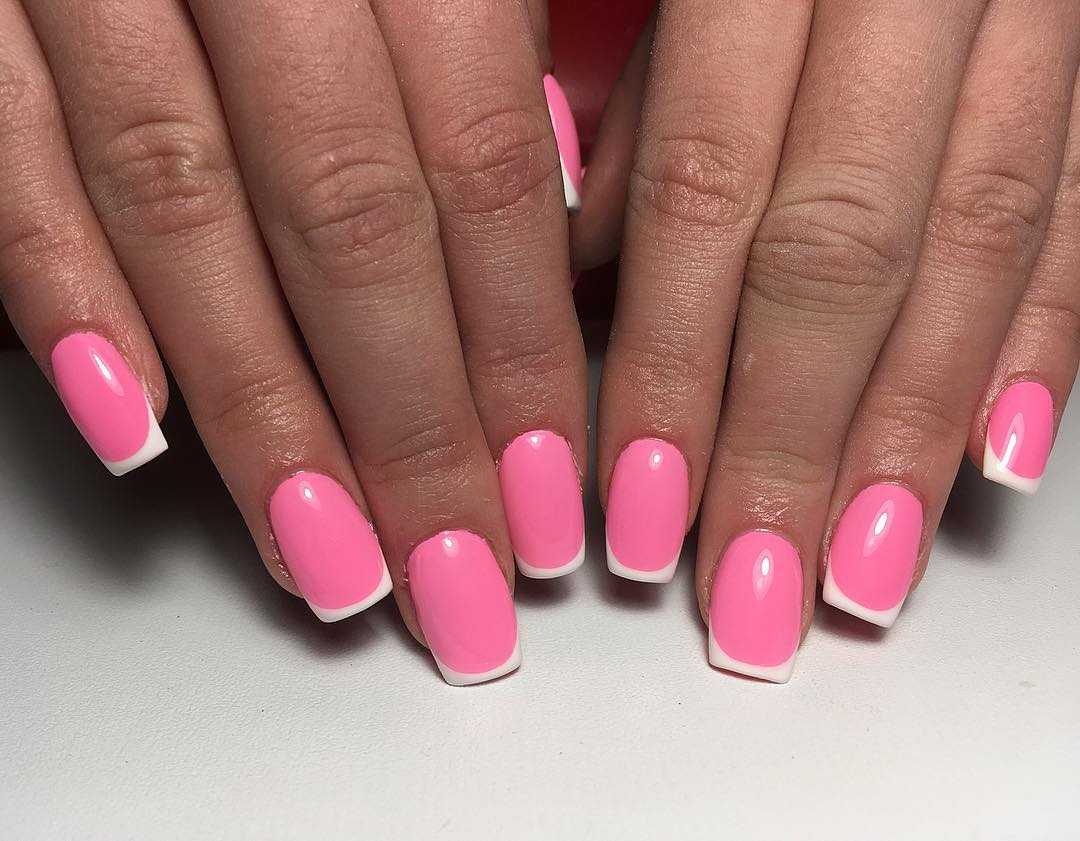 При появлении гель-лака у девушек появилась возможность наслаждаться ухоженным маникюром и аккуратным дизайном ноготков на протяжении 2-3 недель. Розовый френч – это отличный вариант для долгосрочного маникюра, ведь можно подобрать нейтральный оттенок, который не будет выглядеть слишком броско, или же наоборот более яркий тон, чтоб выглядеть привлекательно и стильно. Данный маникюр будет великолепно сочетаться как с офисными комплектами, так и с шикарными вечерними нарядами. Не обязательно выполнять стандартную линию улыбки. Можете смело экспериментировать. Очень утонченно выглядит треугольная улыбка с тоненькими розовыми линиями сверху. По желанию нейл-арт можно украсить декором.
