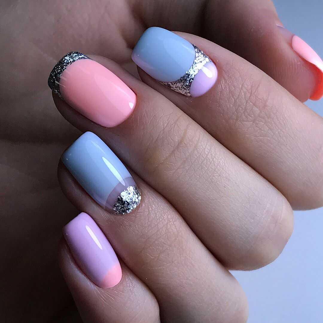 Разноцветный френч всегда выглядит аккуратно и стильно. В зависимости от выбранных оттенков можно использовать технику омбре, добавить в дизайн блестки или стразы, выполнить твист-френч.