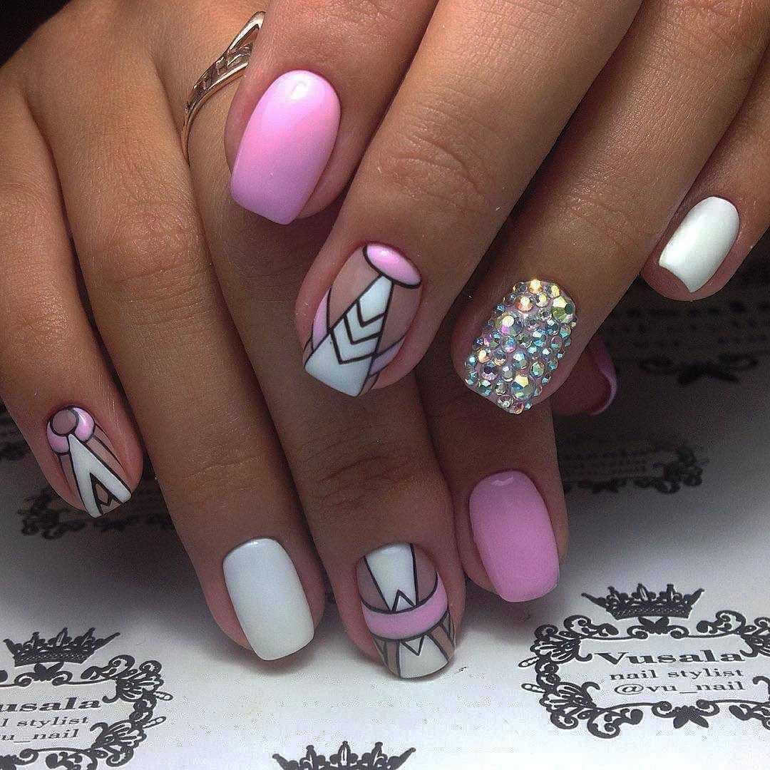Геометрические мотивы держаться в топе популярных по тем же причинам, что и стемпинг. Талант художника, как и большое количество времени, для дизайна не нужен. Зигзаг, полоски и другие геометрические элементы, формы и фигуры рисуются быстро, а в сочетании с омбре выглядят менее категорично и придают ногтям нужную толику расслабленности.