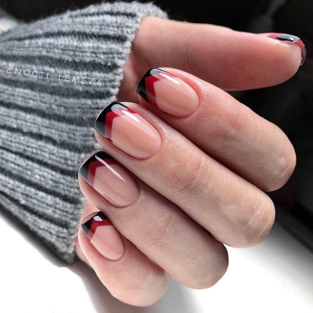 Твист-френч представляет собой дизайн, где для прорисовки края ногтевой пластины используются сразу 2 оттенка. Прорисовка каждого оттенка начинается с боков ногтевой пластины и заканчивается по середине. Два цвета соединяются в центре ногтя, создавая оригинальный треугольный декор.