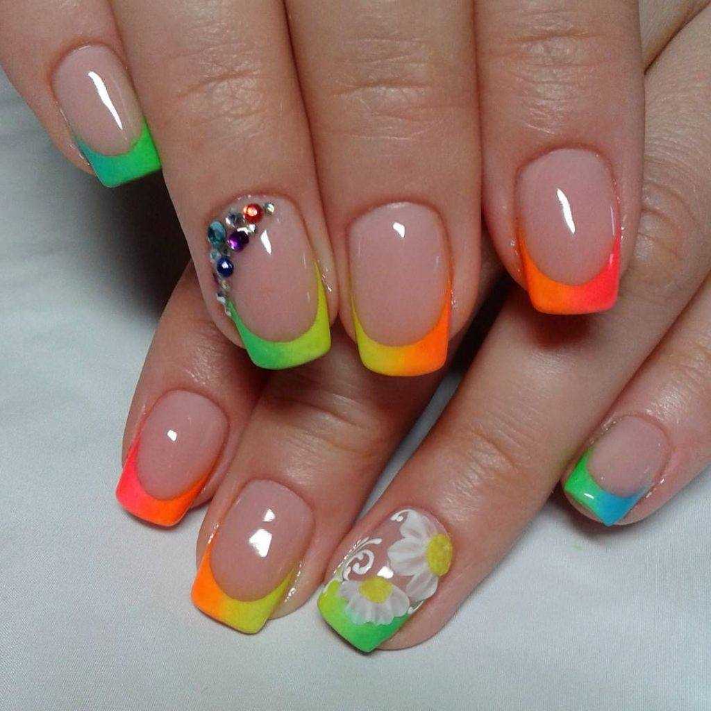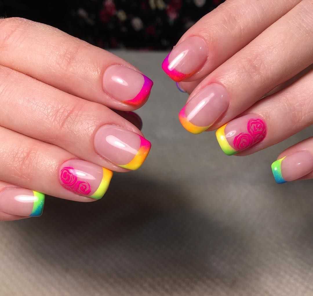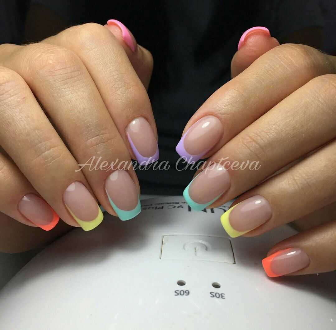 Цветной френч – находка для настоящих модниц. Он помогает каждый раз выглядеть оригинально и ярко, заряжать окружающих позитивом и хорошим настроением. Для летних образов маникюр с цветным декором просто незаменимы. Предлагаем вам подборку лучших фото-идей с цветным френчем, выбирайте и повторяйте нейл-арты на своих ноготках.
