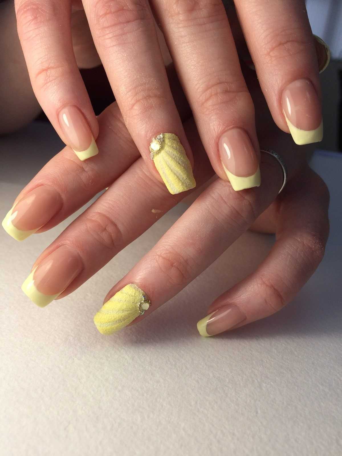 Нередко белый френч дополняют мелкими стразами на безымянном пальце, что добавляет дизайну нежности и женственности.
