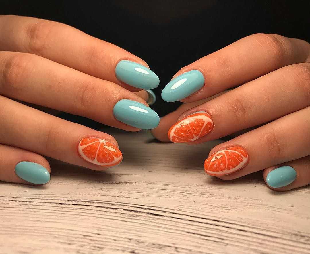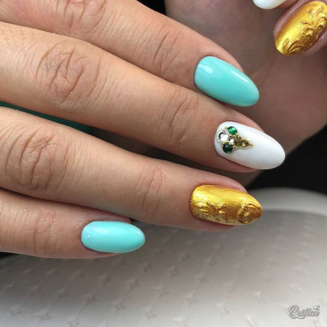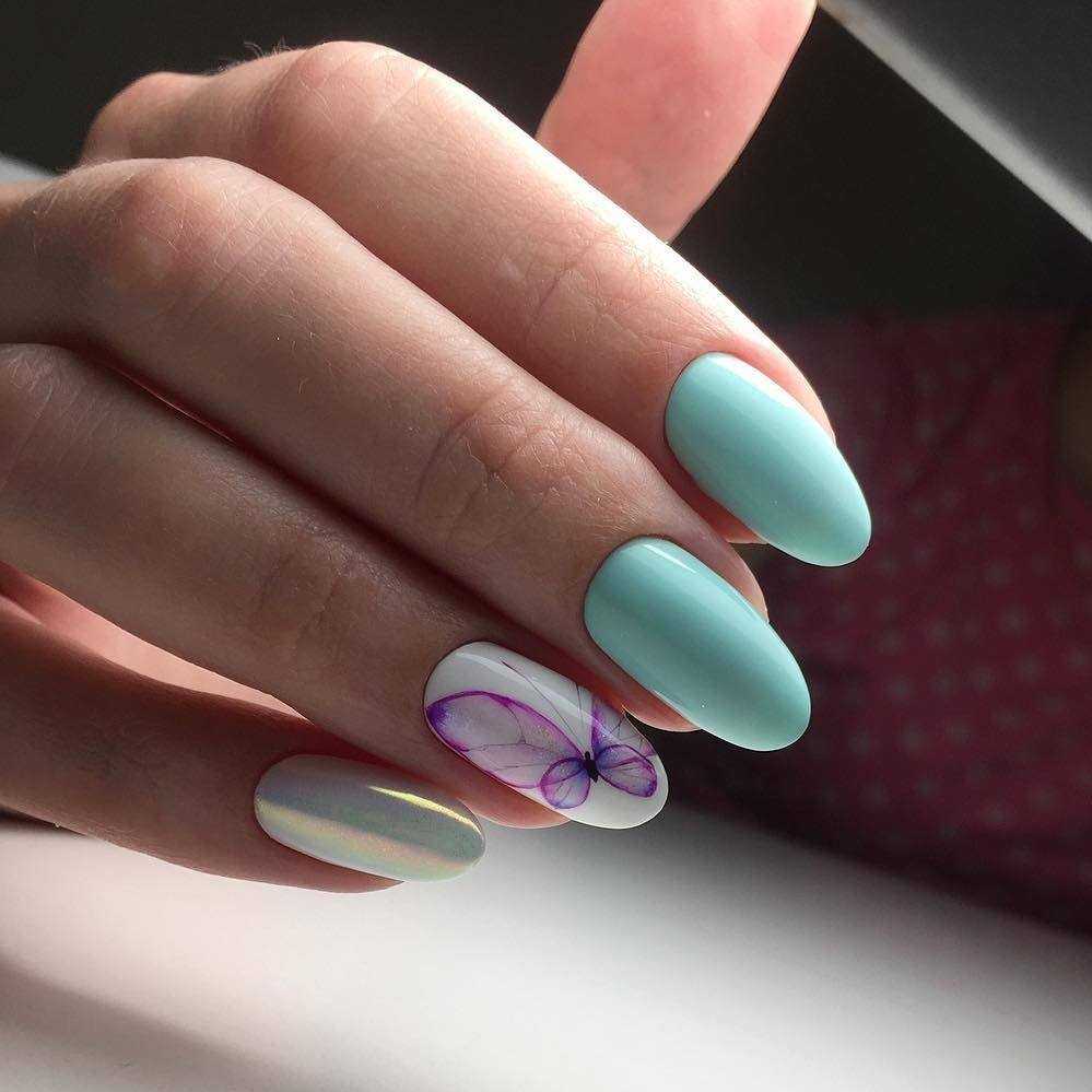 Нарисовать дымку или морскую волну не составляет труда. Для этого можно использовать аэрограф или маникюрную кисть. Красиво выглядят нейл-арты, где помимо голубого оттенка еще присутствует золотой или серебряный глиттер. Подобные минималистичные нейл-арты – тренд летнего сезона 2020. Он не доставит проблем во время отдыха на море, будет отлично смотреться как на пляже, так и на променаде.