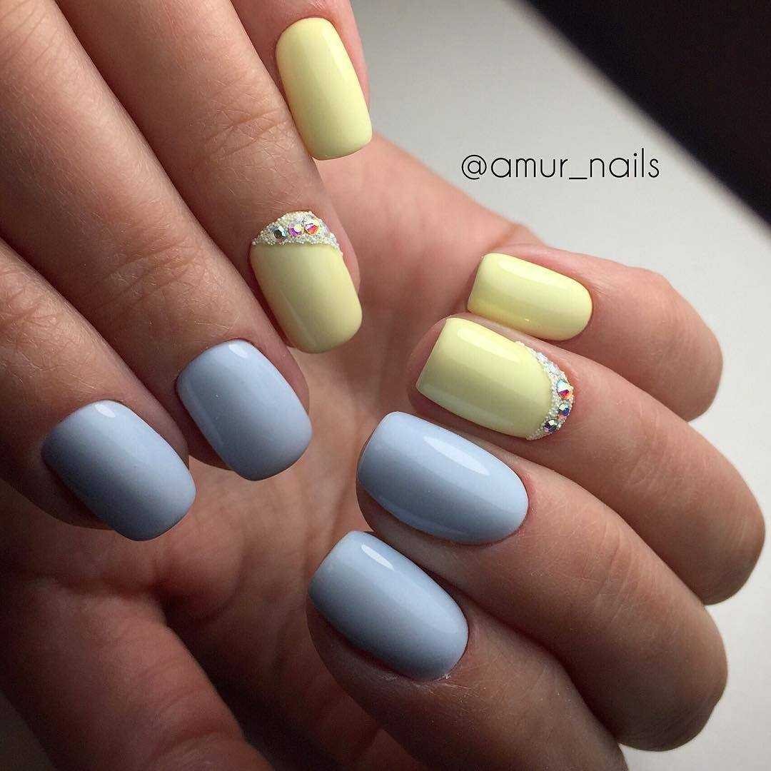 Особое внимание дизайнеры рекомендуют уделить солнечному жёлтому или оттенку яичного желтка, которые прекрасно смотрятся с ярким зелёным. Идеальной компанией для лимонного или молочного жёлтого станут приглушенный мятный или бледно-зелёный лак