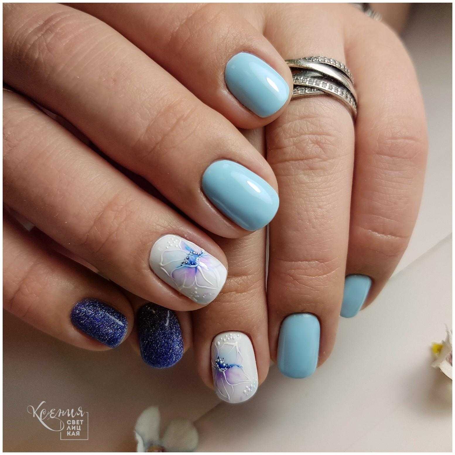 #6 Синий маникюр с дымкой 2020 на море