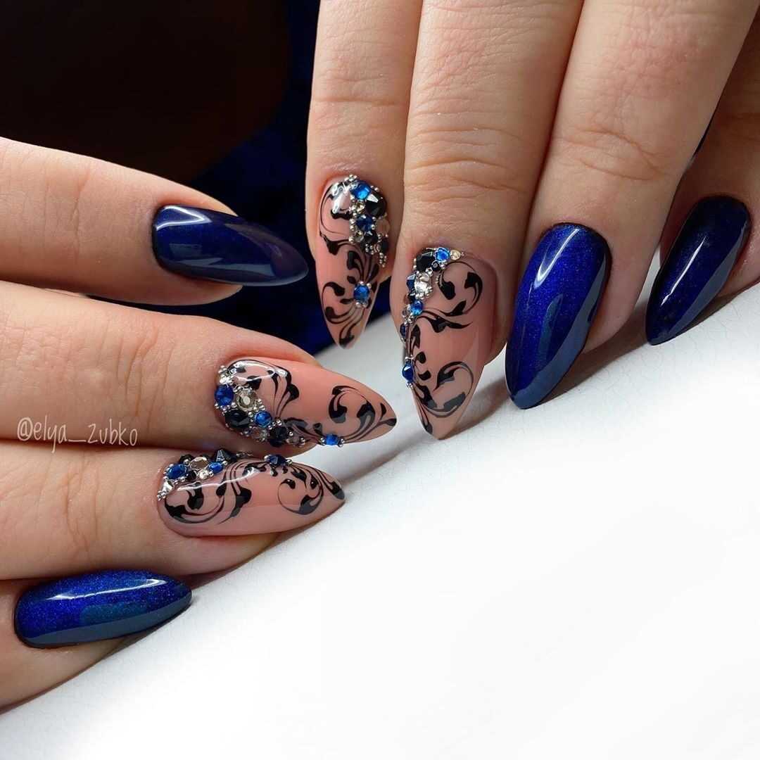 Чёрно-голубой маникюр