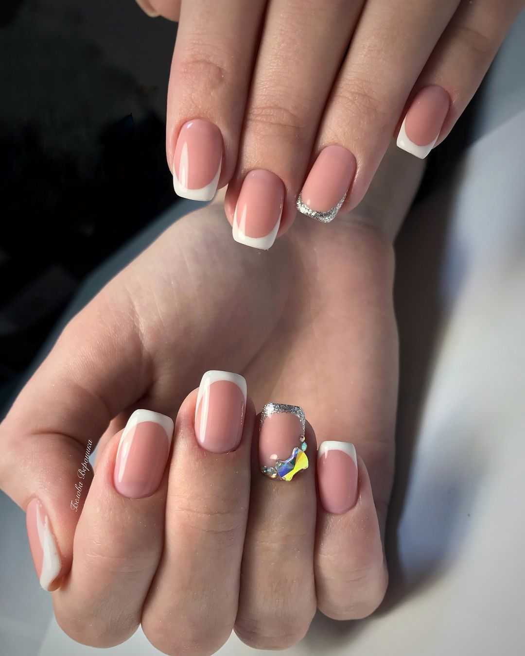 Где расположить блестки, чтобы они не испортили обаяние французского маникюра? Есть несколько вариантов: