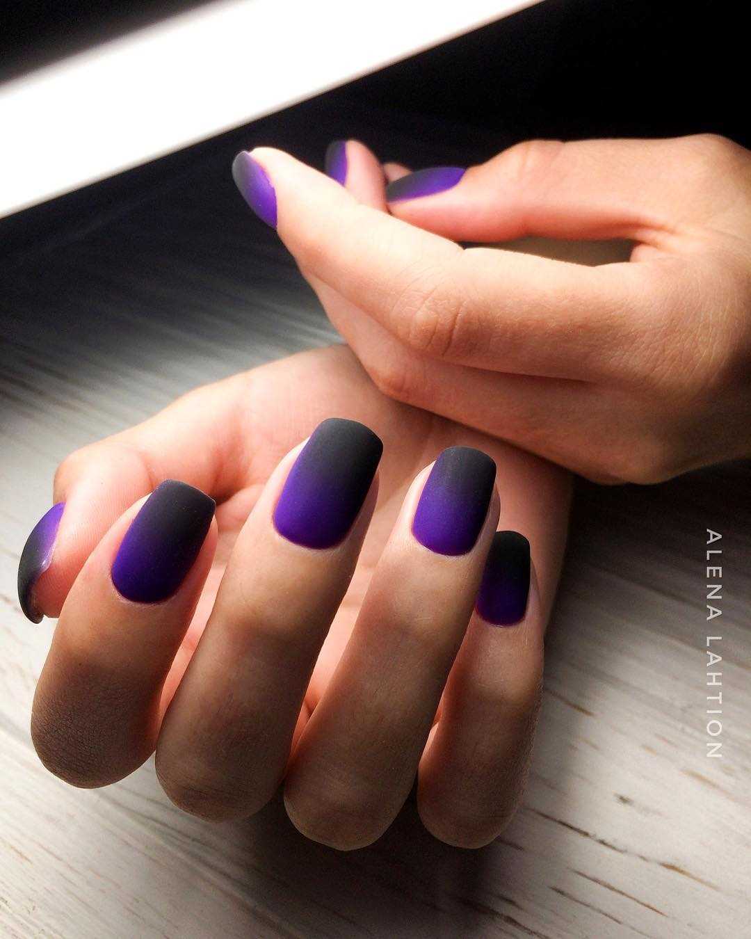 Осенне-зимний эффектный маникюр градиент это преимущественно холодные оттенки зеленого, синего, винного, фиолетового и черного цветов.