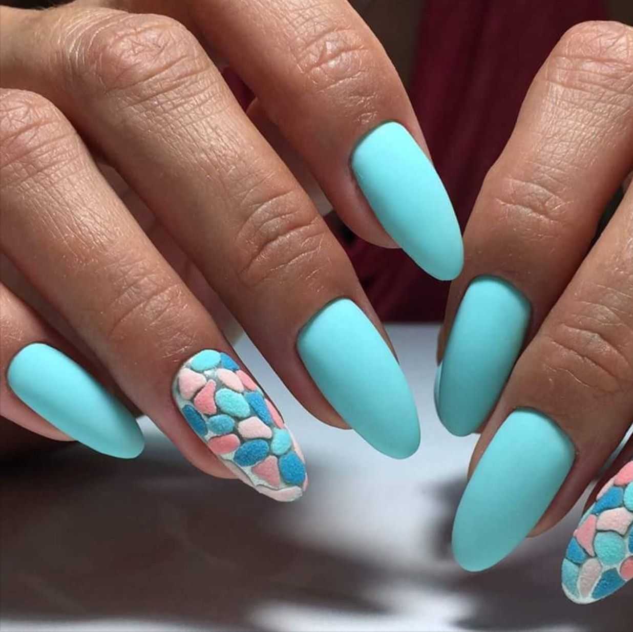 Голубой и розовый – оттенки мягкие и нежные, но они также могут использоваться для контрастных нейл-артов. В тренде однотонный маникюр в голубом и розовым цветах. Такой тандем оттенков часто дополняют стразами в прикорневой зоне. Так маникюр смотрится гораздо ярче и интереснее.