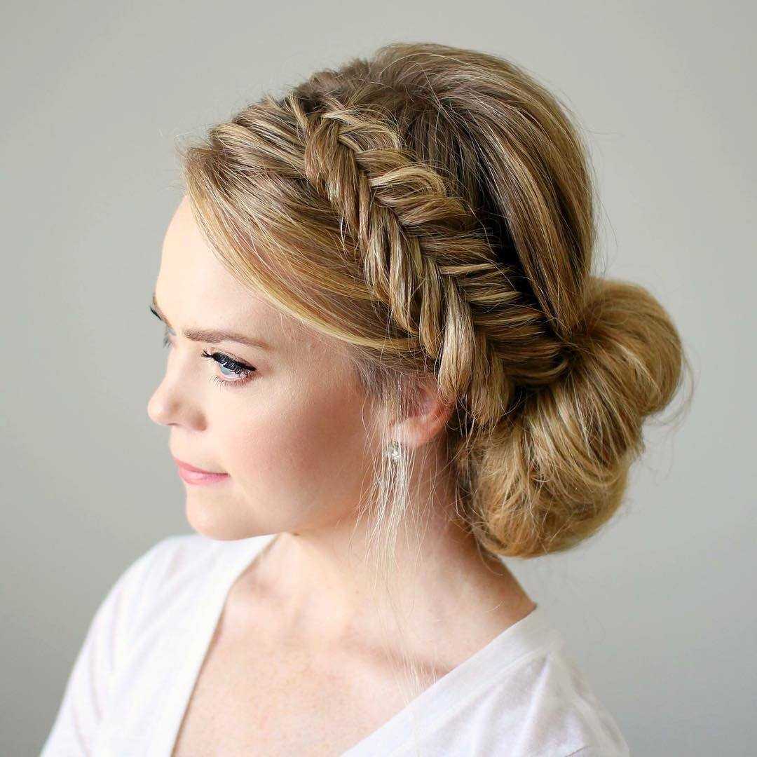 Не новая, но снова ставшая популярной укладка. Если пряди длинные, крепкие, попробуйте собрать их в пучок. Гладко укладывать волосы у головы не обязательно – можно создать легкий беспорядок.