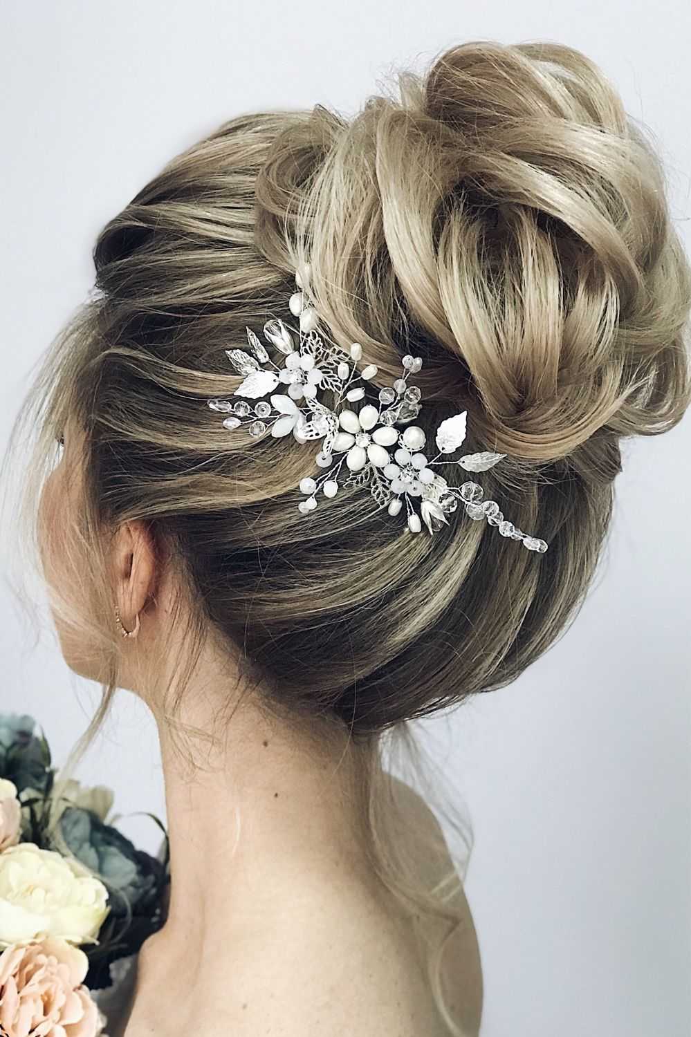Манящие локоны – это один из символов свадебной церемонии для невесты. Разновидностей укладки локонов очень много, так что любая девушка сможет подобрать для себя подходящую прическу, независимо от формы лица или структуры волос. Голливудские или ангельские завитки, небрежно растрепанные или максимально фактурные, короткие или длинные – любой вариант выглядит роскошно, перевоплощая невесту в королеву праздника. А вот пышный пучок на затылке с выпущенными прядями по бокам придаст образу невесты игривость и шарм. Такая прическа выглядит естественно и аристократично. Пучок можно сделать низким или высоким. Пучок с завитками выглядит более густым и пышным. Декорировать прическу можно элегантным гребнем, шпильками или фатой.