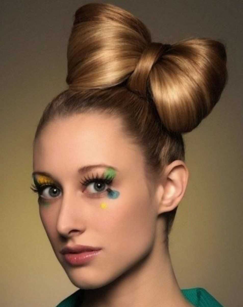 Также среди причёсок на каждый день выделились пучки, которые могут быть слегка распушенными или гладко зачёсанными. Выполняется такая укладка как с дополнительными атрибутами – бубликами, валиками, так и без них.
