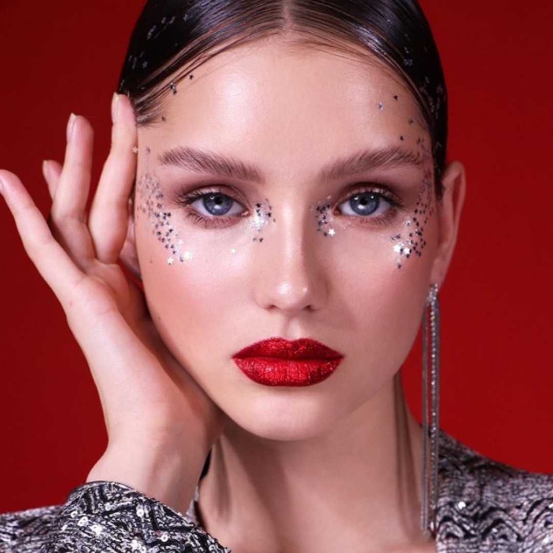 Дополненные глиттером или перламутровым финишем, перечисленные оттенки помогут создать идеальный новогодний образ. Особенно актуальны помады с блёстками или камифибуками. На популярных показах мод блёстки заменили специальной фольгой для мейкапа, что придало внешности моделей экстравагантную нотку, вместе с тем создавая аутентичный стиль.