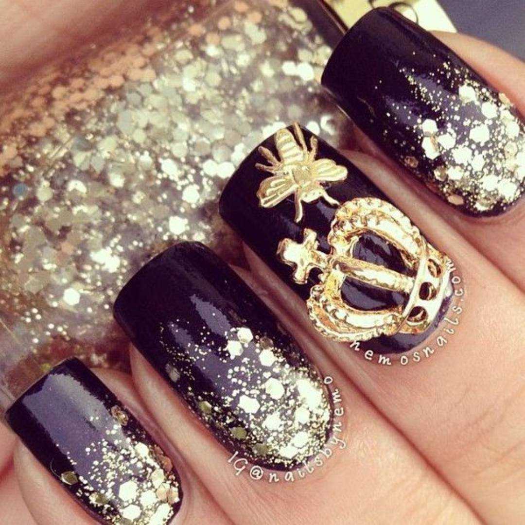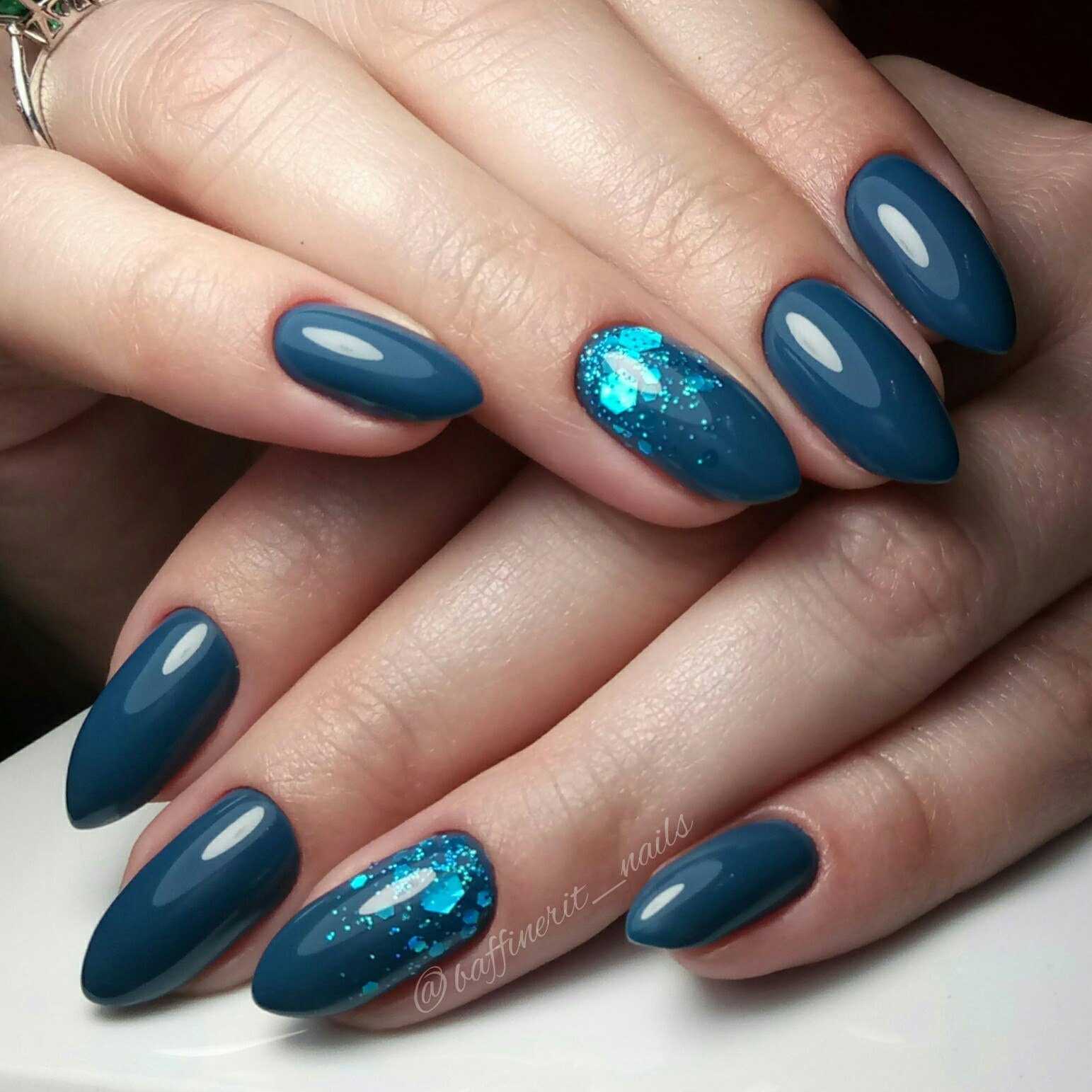 Глиттер-лак как раз создает декорирующий элемент в виде блесток. Им можно покрыть полностью один ноготь на руке, либо на длинных ногтях создать легкое напыление в заостренной части верха, или наоборот — у ногтевого основания.