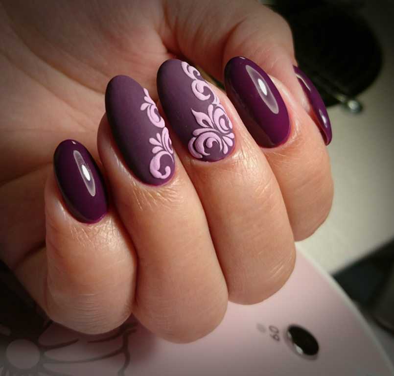 Использование матового гель-лака придаст вашему нейл-арту сдержанности и манящего очарования. Модницы, уставшие от глянцевых поверхностей, с радостью выполняют на своих ноготках великолепные и по-королевски изысканные дизайны в матовом исполнении, комбинируя их с геометрическими, флористическими узорами.