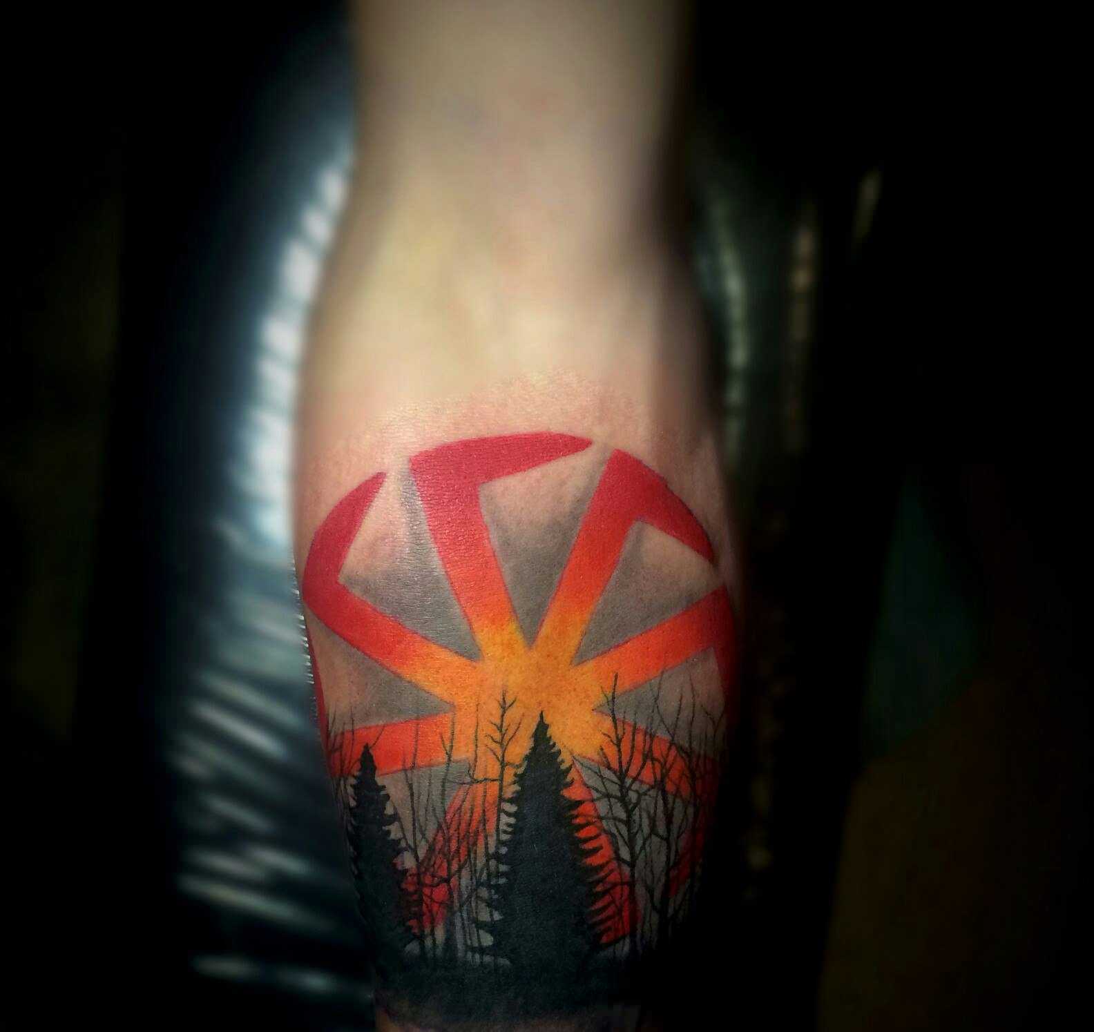 - Алатырь – данная татуировка считается одной из самых распространенных из всех рунических рисунков. Алатырь гарантирует равновесие добра и зла, света и тени, а также всего живого.