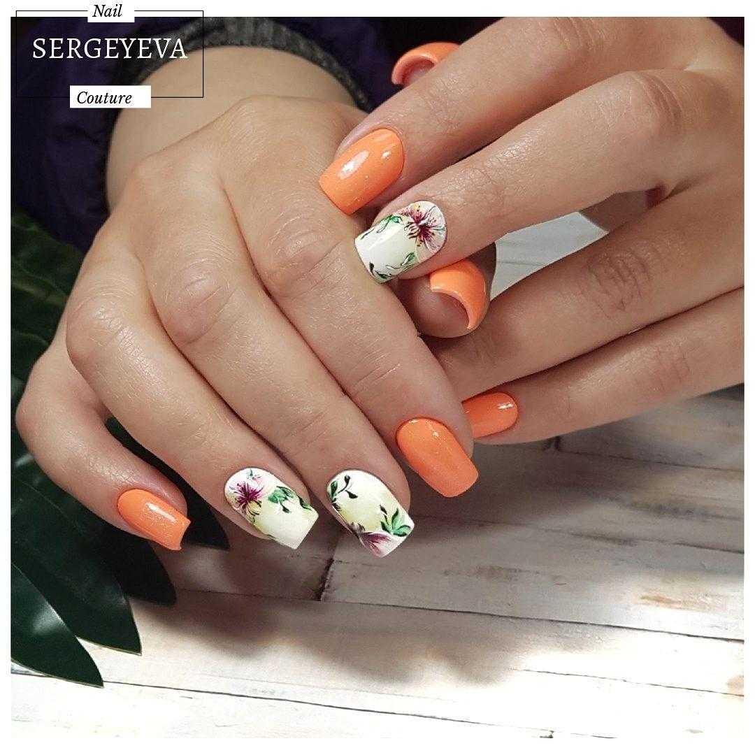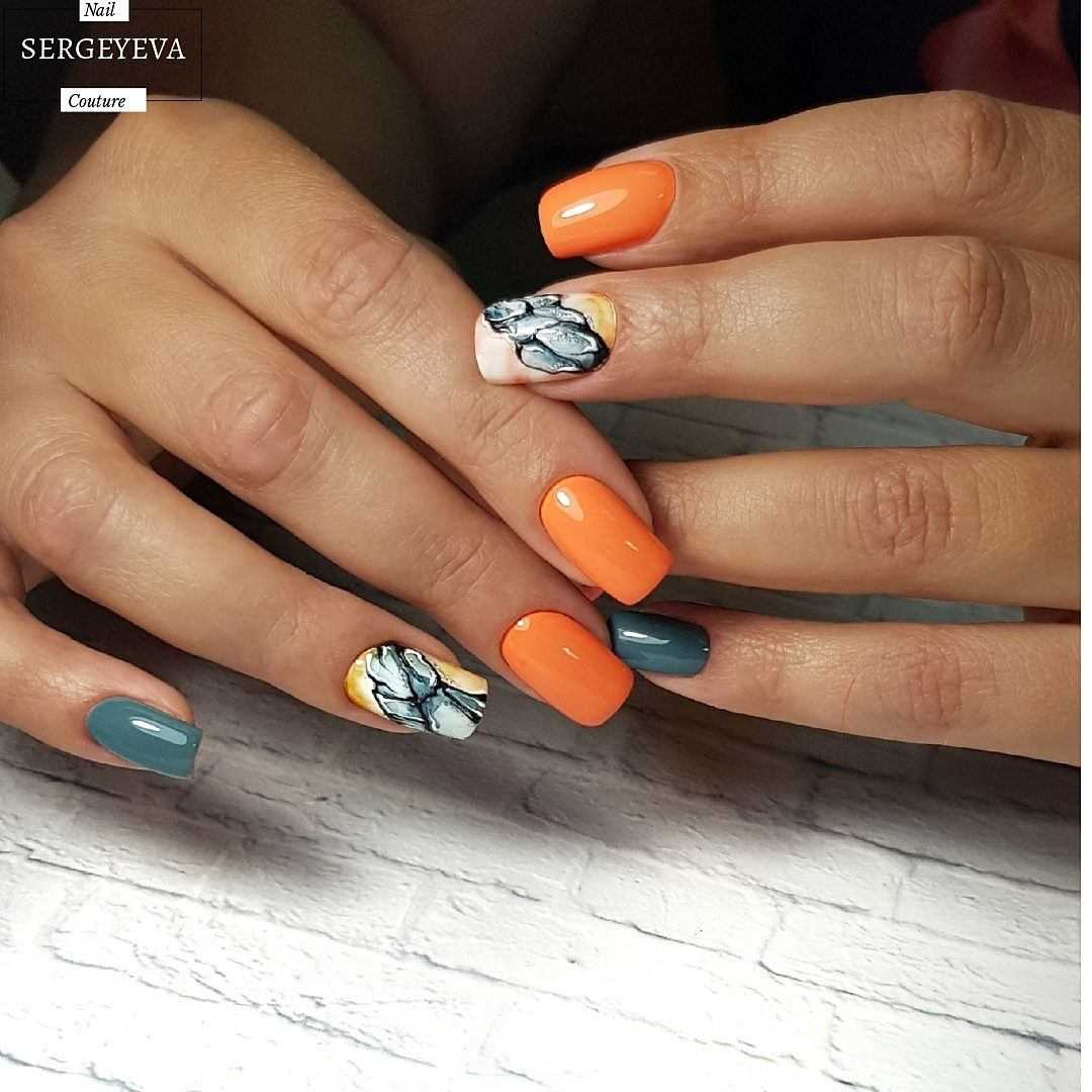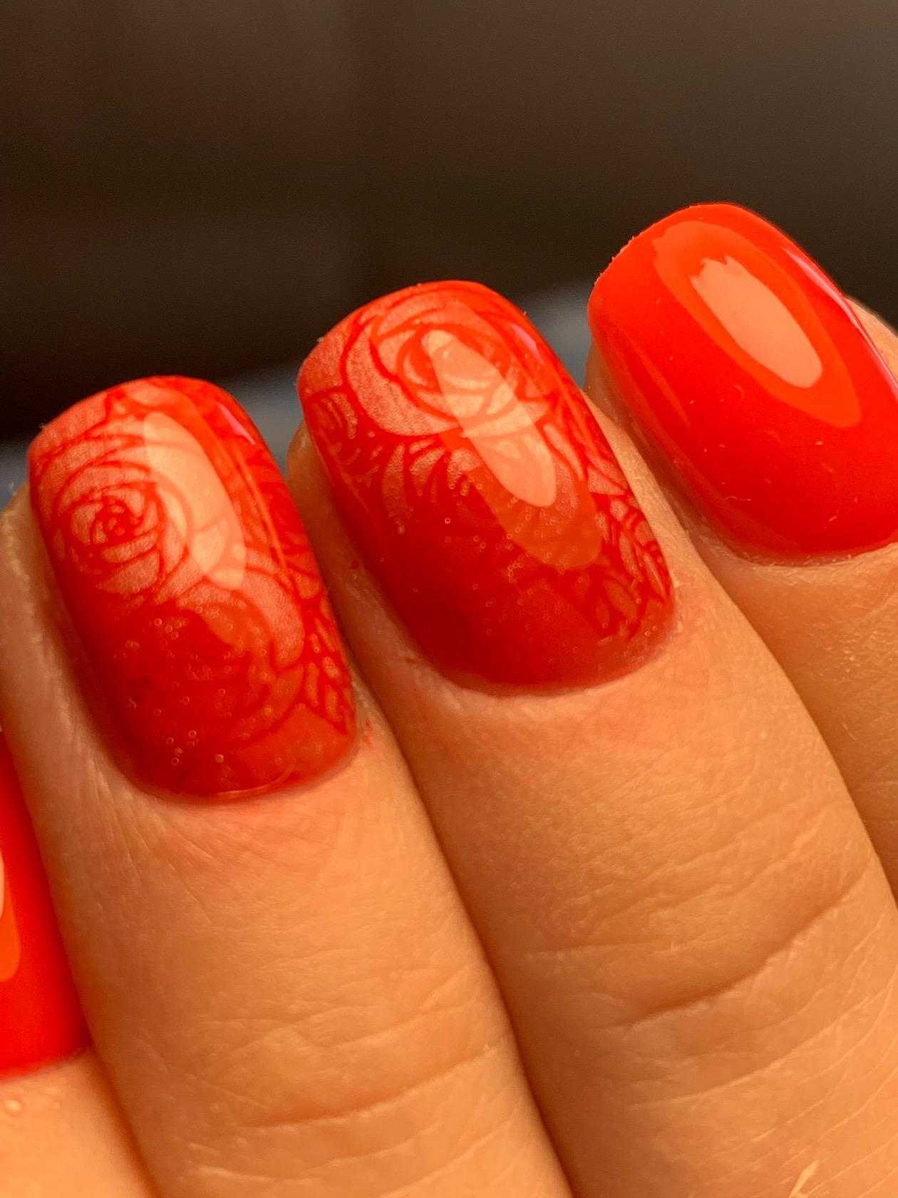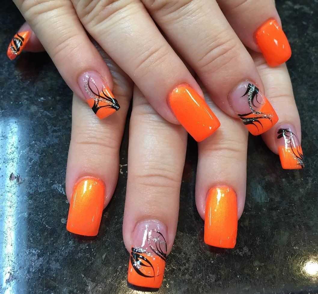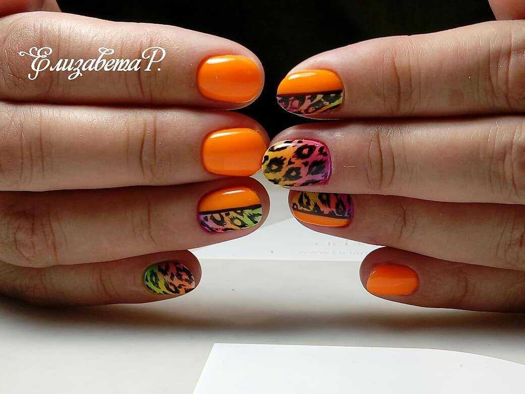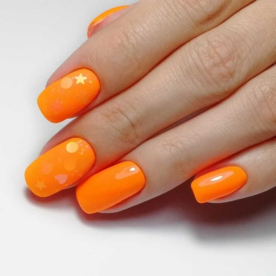 Обладательницам и любительницам коротких ногтевых пластин, придётся по вкусу маникюр в оранжевом цвете. С таким покрытием ноготки будут смотреться объёмнее и насыщенней
